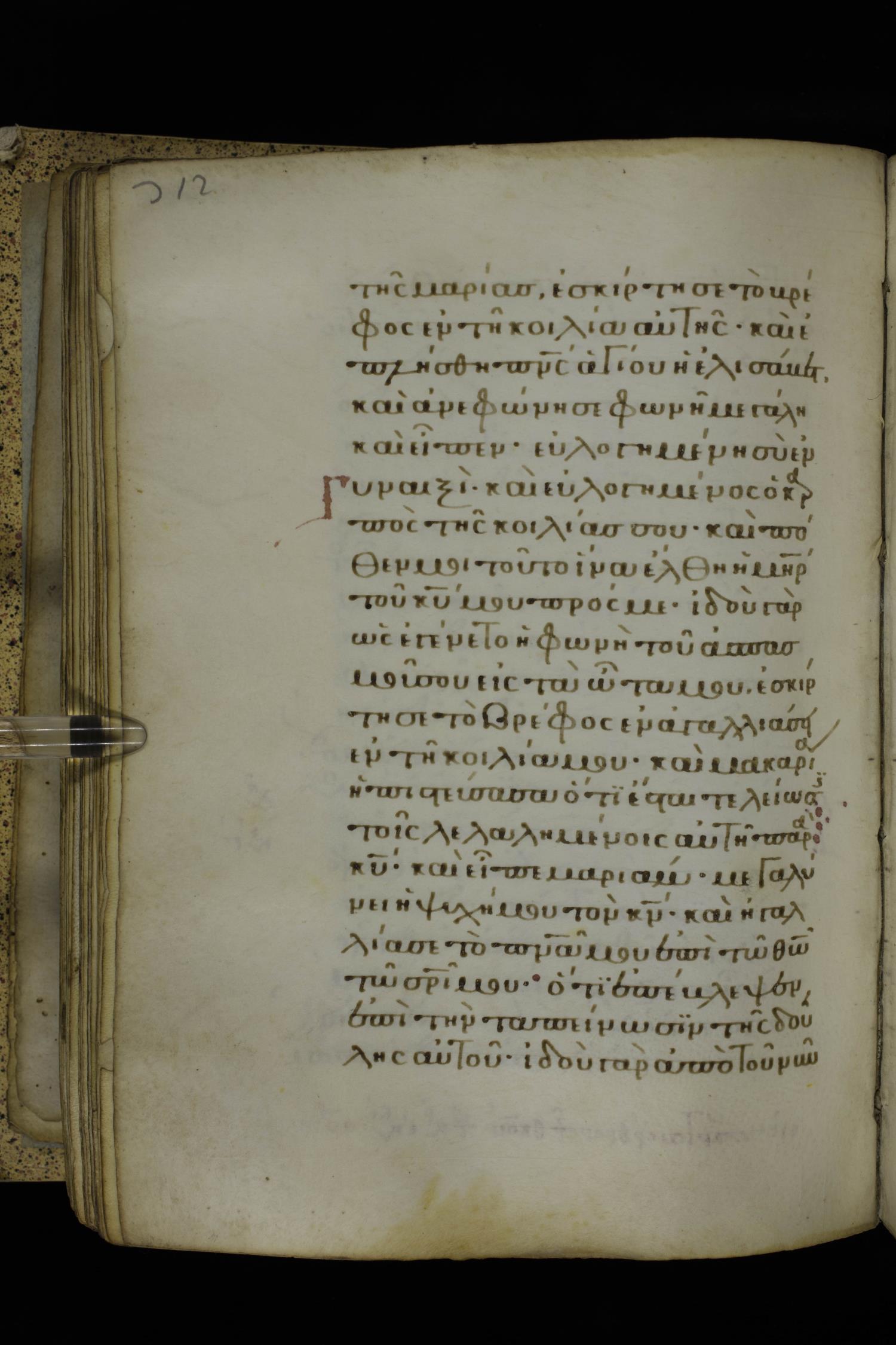Fourteenth century minuscule of the Gospels on parchment; 332 leaves, 1 column, 21 lines per column. Images were taken at the National Library of Greece in Athens.