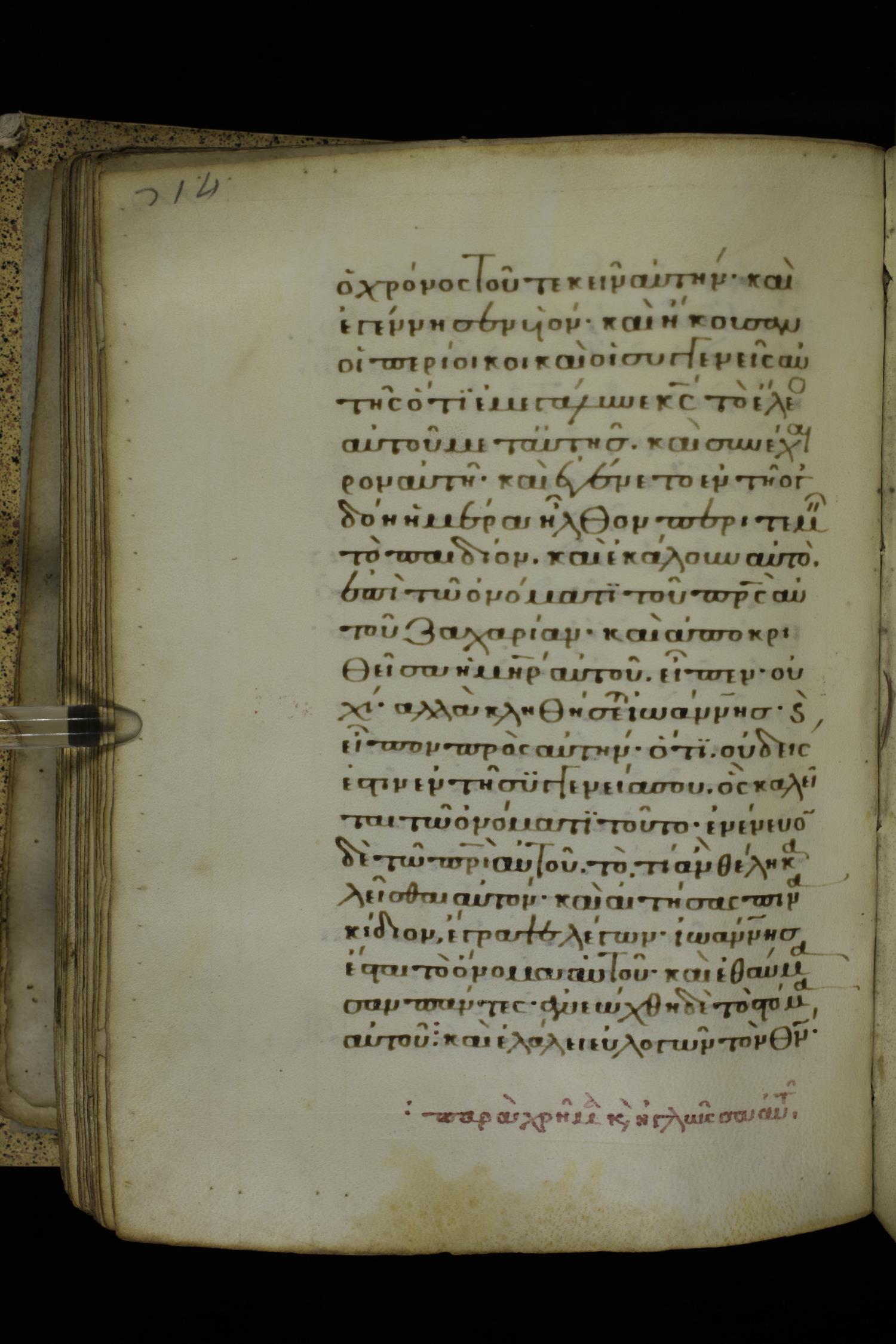 Fourteenth century minuscule of the Gospels on parchment; 332 leaves, 1 column, 21 lines per column. Images were taken at the National Library of Greece in Athens.