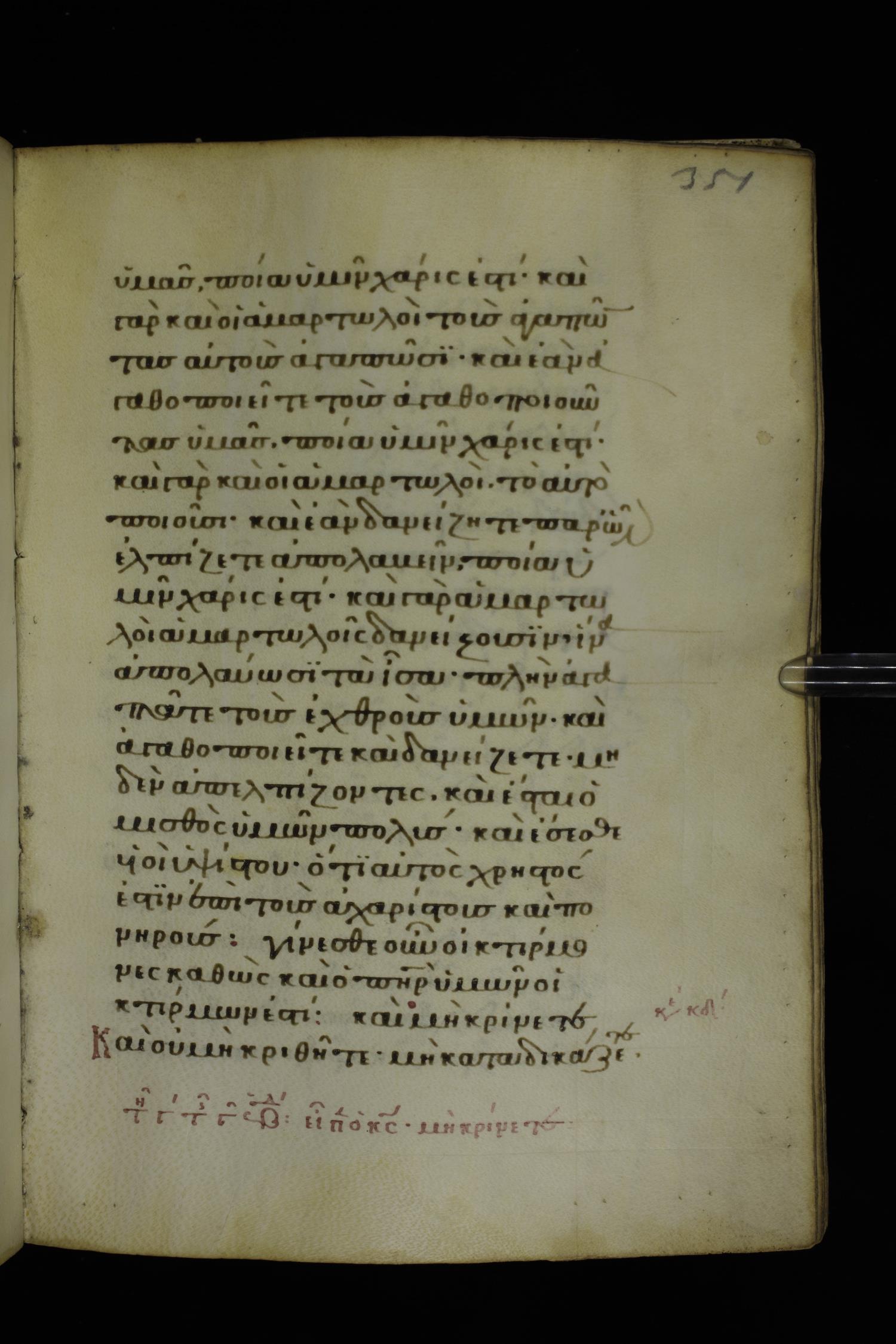 Fourteenth century minuscule of the Gospels on parchment; 332 leaves, 1 column, 21 lines per column. Images were taken at the National Library of Greece in Athens.