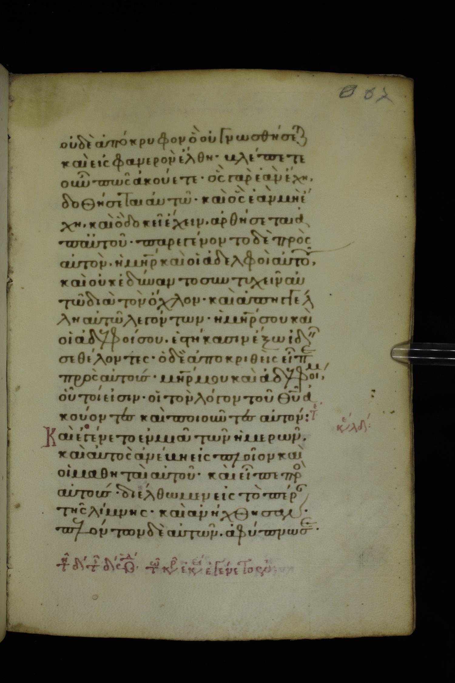Fourteenth century minuscule of the Gospels on parchment; 332 leaves, 1 column, 21 lines per column. Images were taken at the National Library of Greece in Athens.