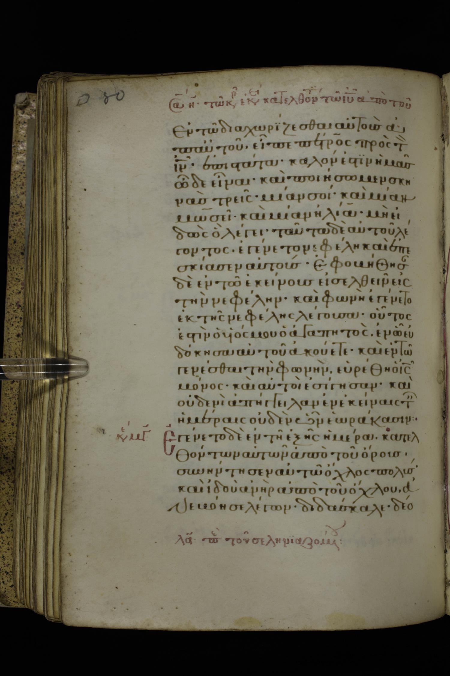 Fourteenth century minuscule of the Gospels on parchment; 332 leaves, 1 column, 21 lines per column. Images were taken at the National Library of Greece in Athens.