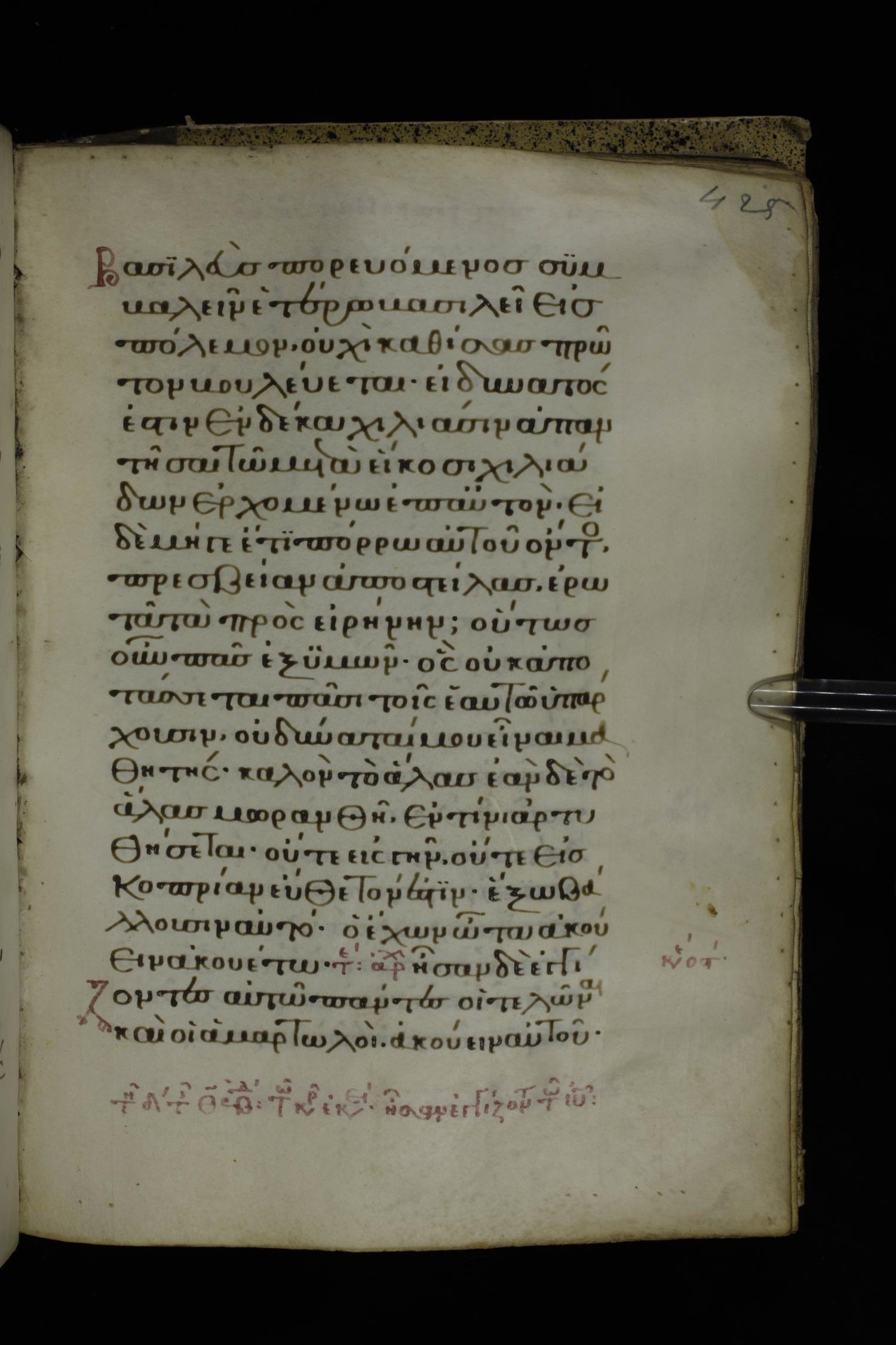 Fourteenth century minuscule of the Gospels on parchment; 332 leaves, 1 column, 21 lines per column. Images were taken at the National Library of Greece in Athens.