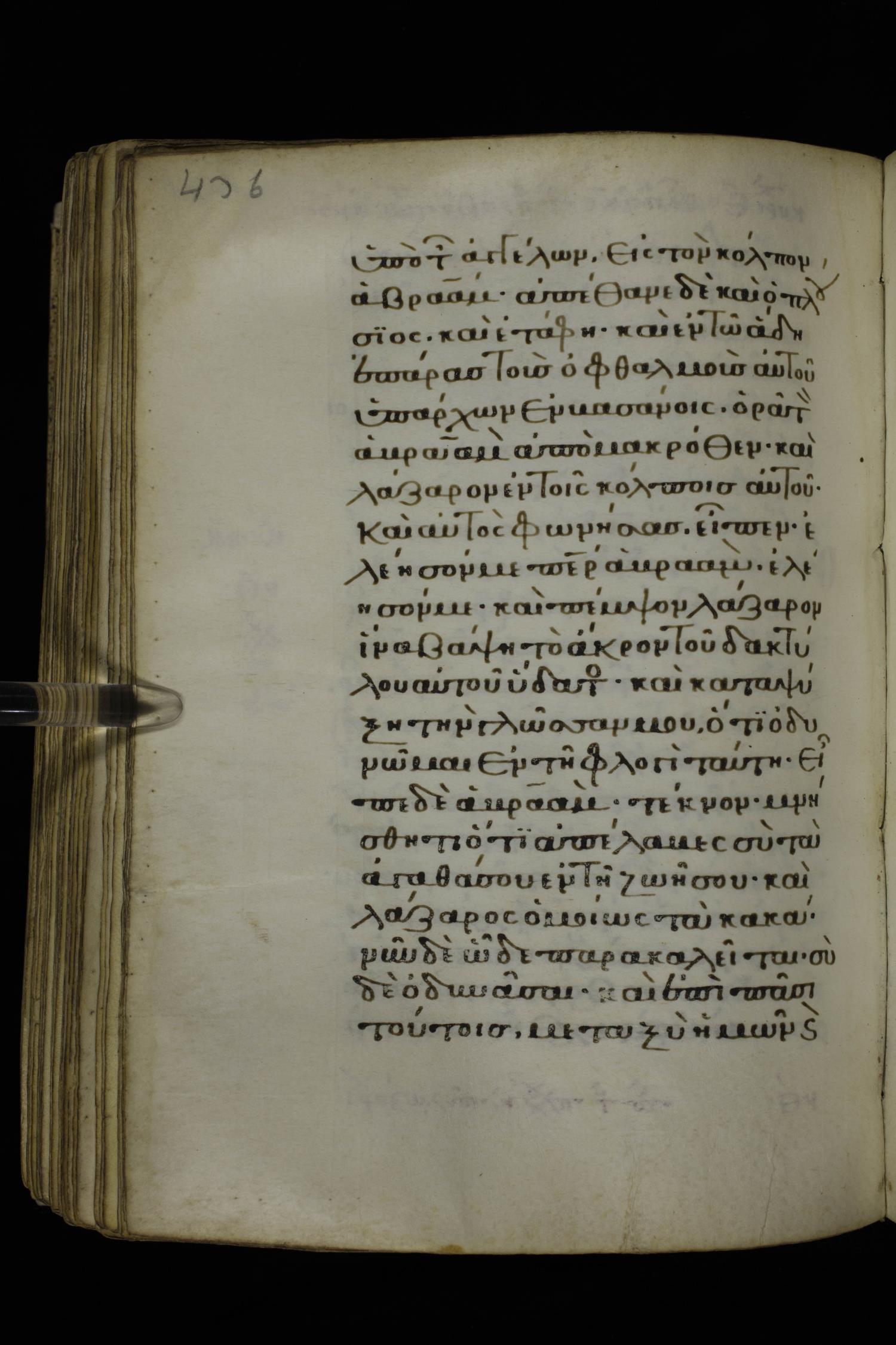 Fourteenth century minuscule of the Gospels on parchment; 332 leaves, 1 column, 21 lines per column. Images were taken at the National Library of Greece in Athens.