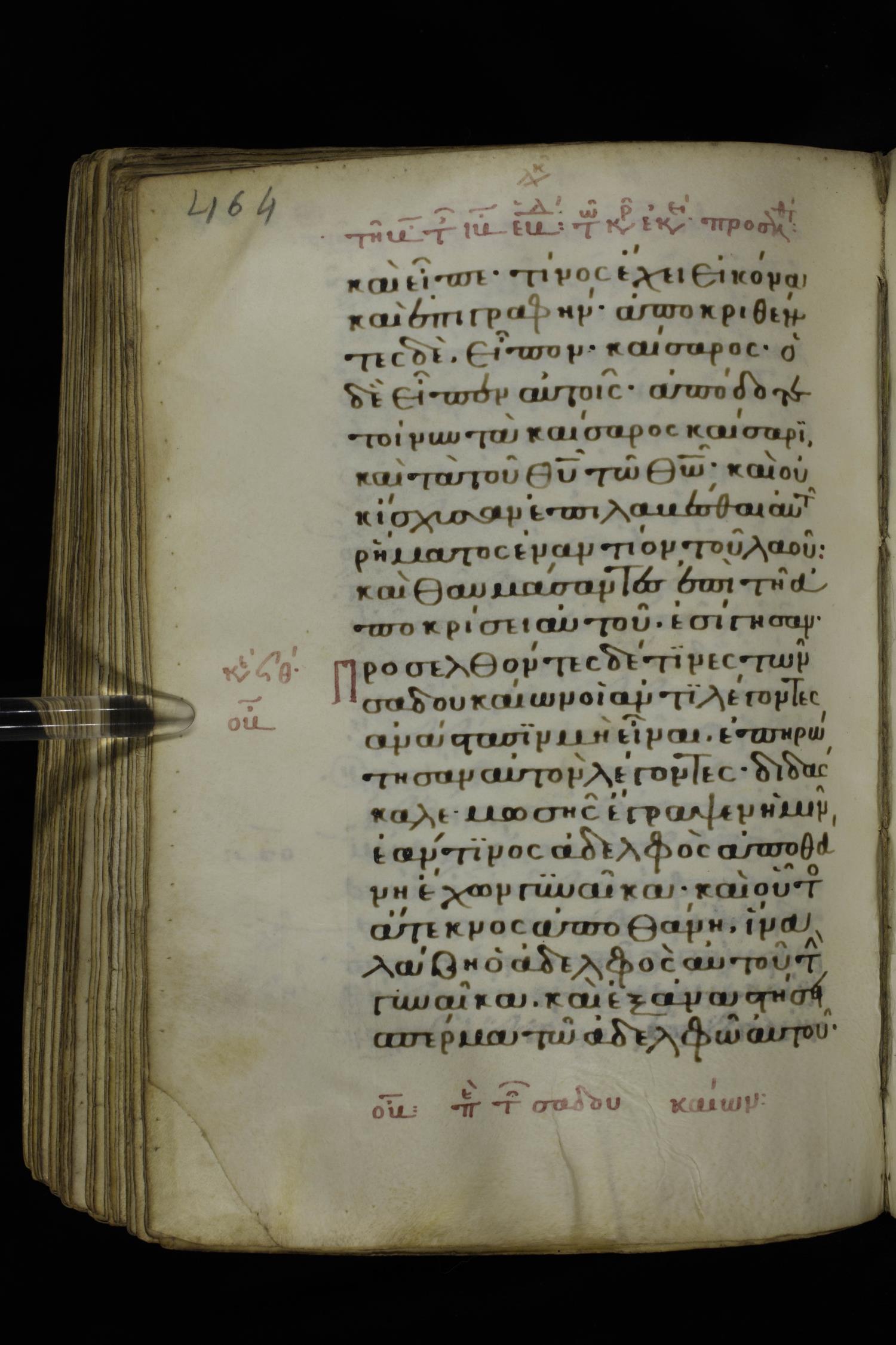 Fourteenth century minuscule of the Gospels on parchment; 332 leaves, 1 column, 21 lines per column. Images were taken at the National Library of Greece in Athens.