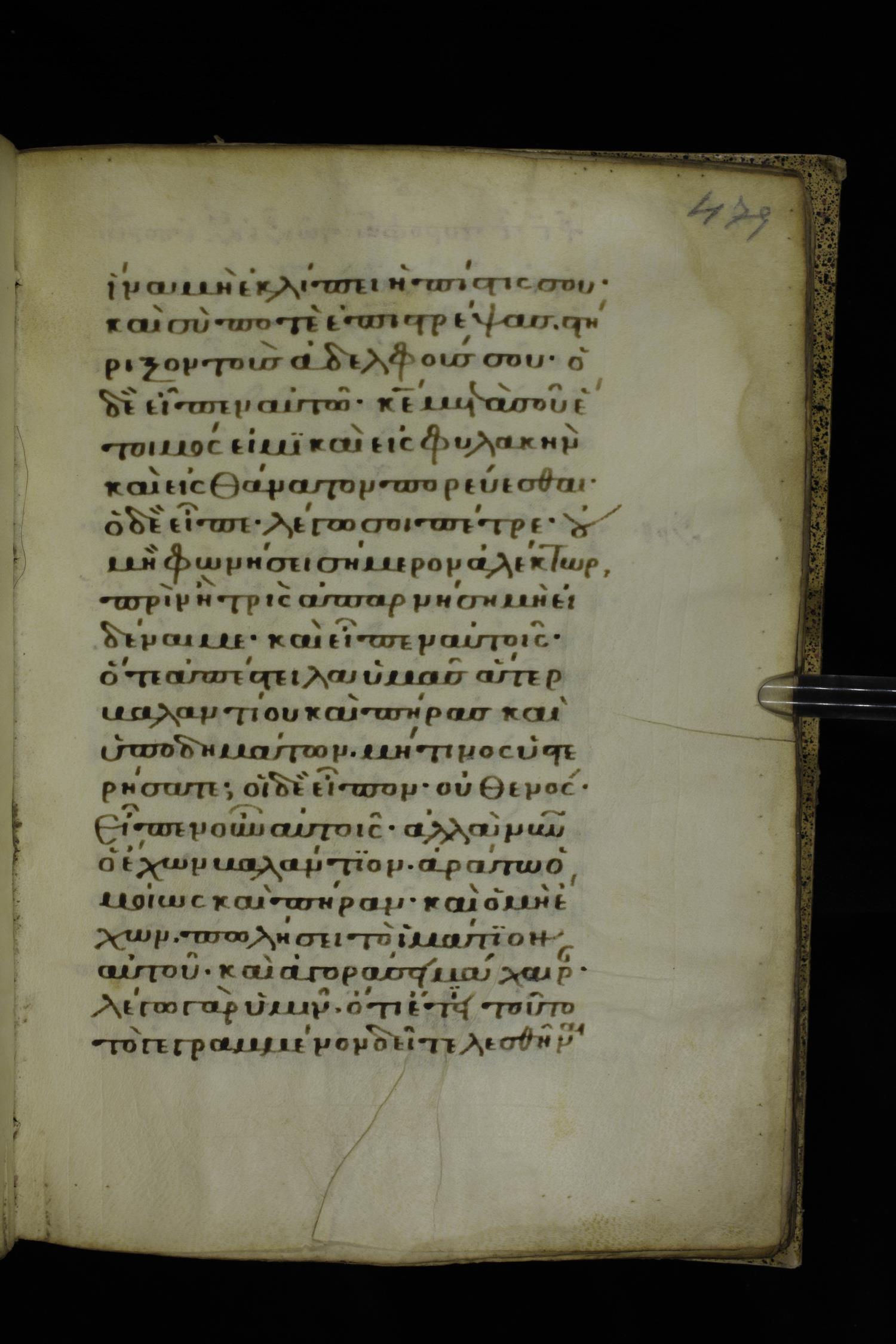 Fourteenth century minuscule of the Gospels on parchment; 332 leaves, 1 column, 21 lines per column. Images were taken at the National Library of Greece in Athens.