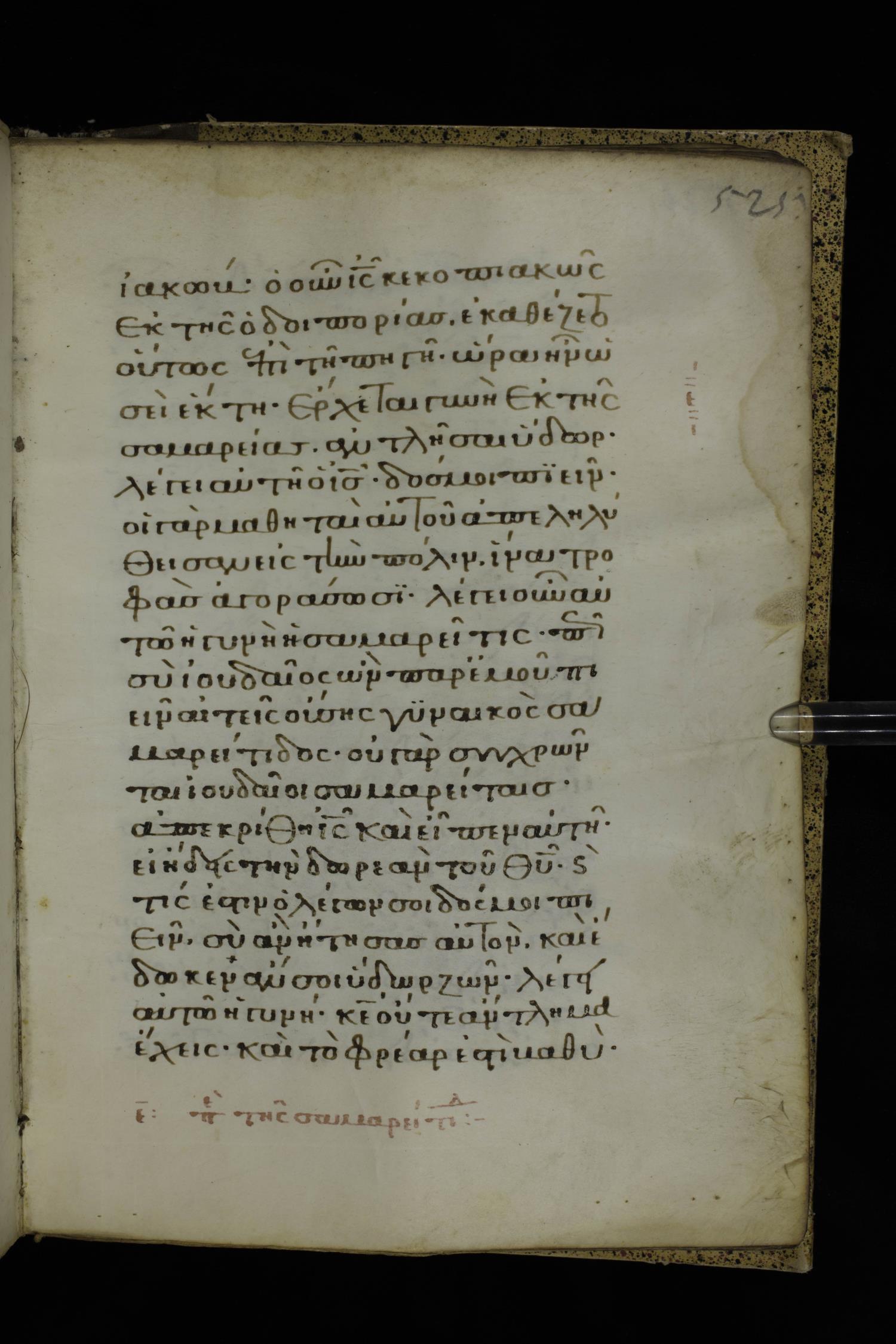 Fourteenth century minuscule of the Gospels on parchment; 332 leaves, 1 column, 21 lines per column. Images were taken at the National Library of Greece in Athens.