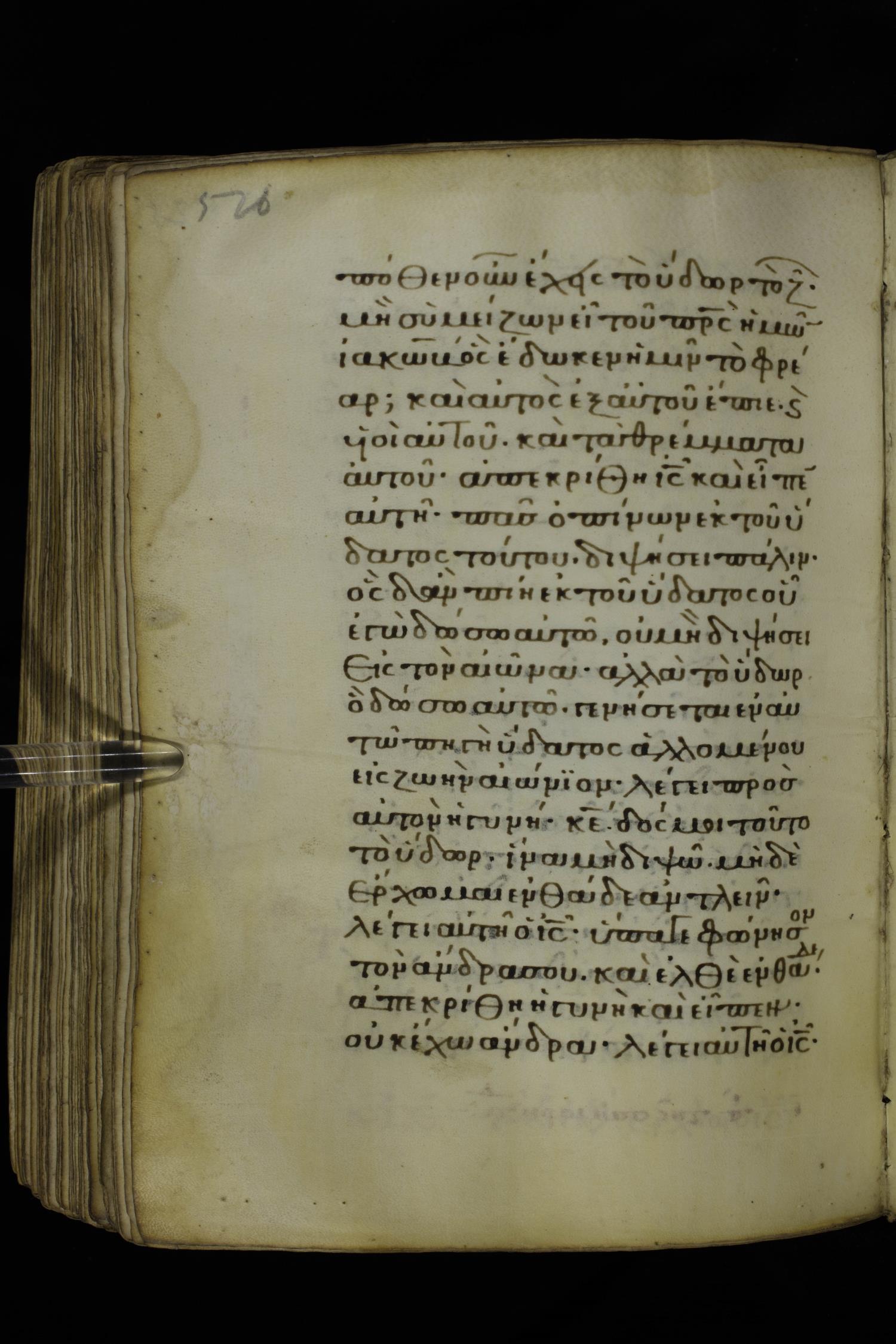 Fourteenth century minuscule of the Gospels on parchment; 332 leaves, 1 column, 21 lines per column. Images were taken at the National Library of Greece in Athens.