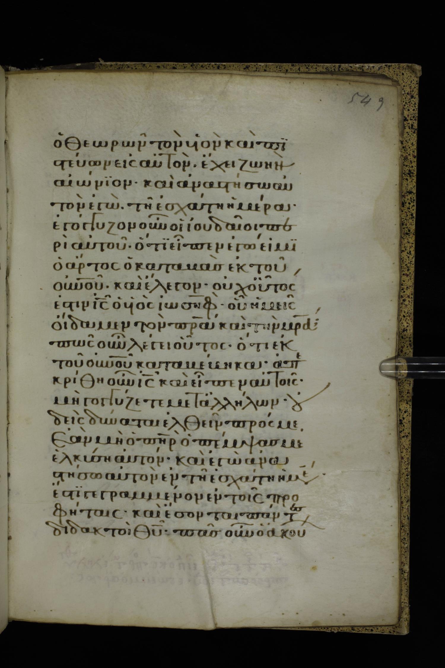 Fourteenth century minuscule of the Gospels on parchment; 332 leaves, 1 column, 21 lines per column. Images were taken at the National Library of Greece in Athens.