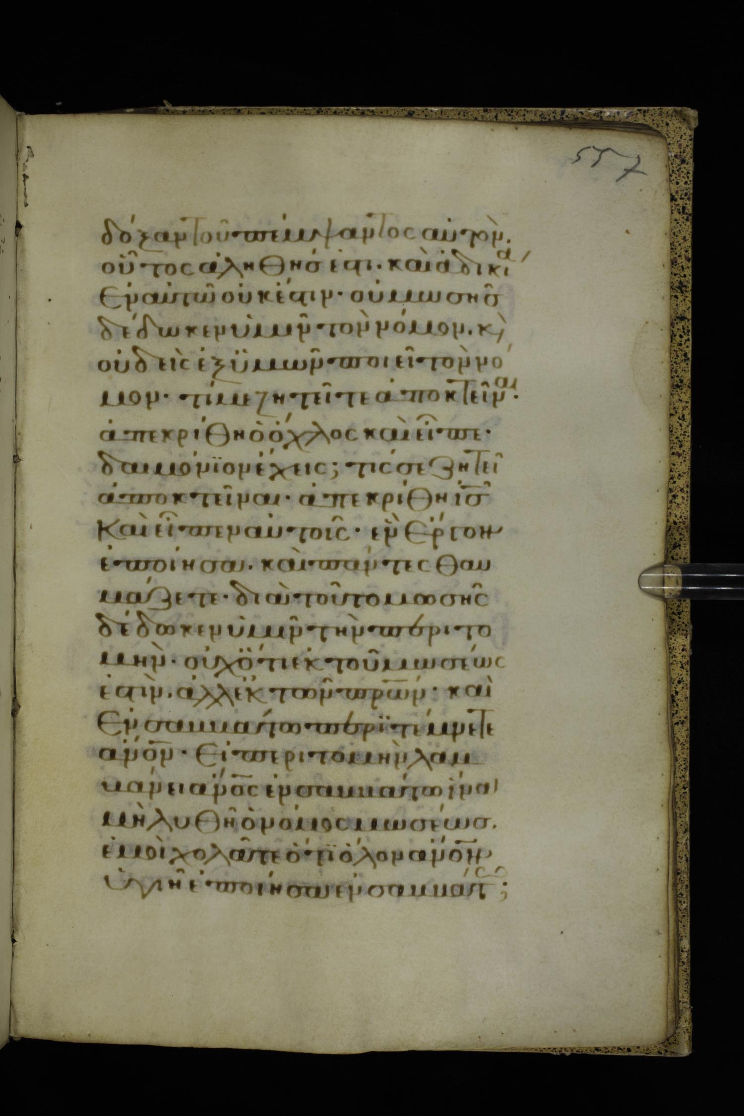 Fourteenth century minuscule of the Gospels on parchment; 332 leaves, 1 column, 21 lines per column. Images were taken at the National Library of Greece in Athens.