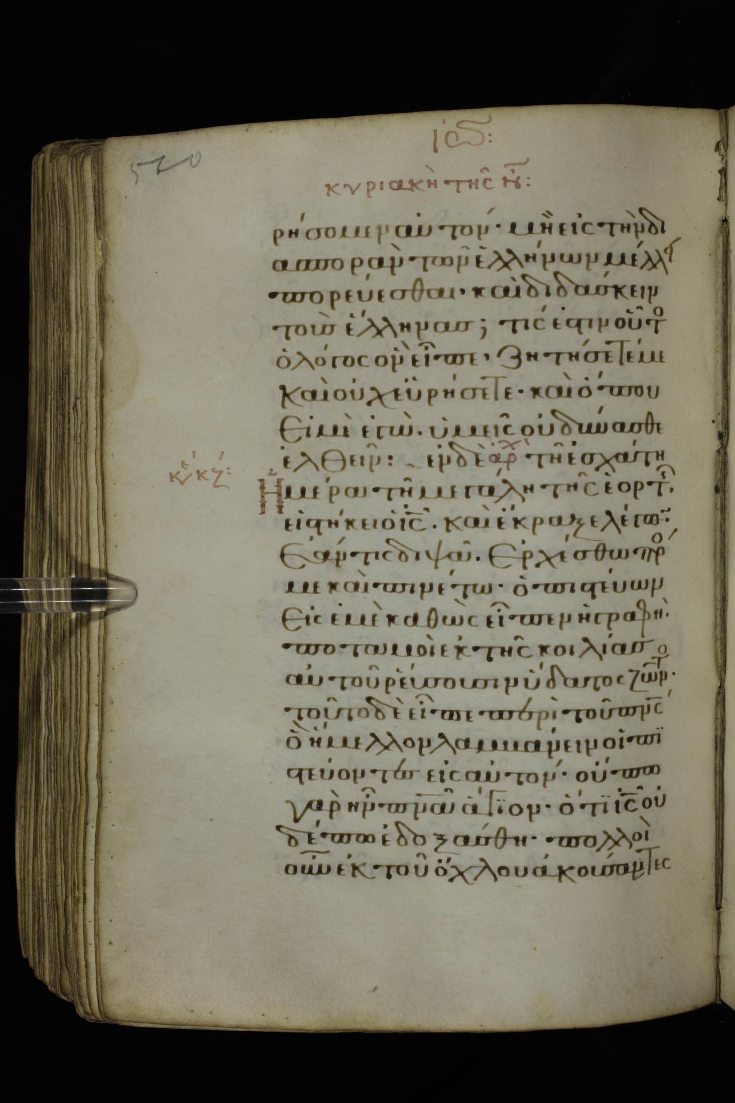 Fourteenth century minuscule of the Gospels on parchment; 332 leaves, 1 column, 21 lines per column. Images were taken at the National Library of Greece in Athens.