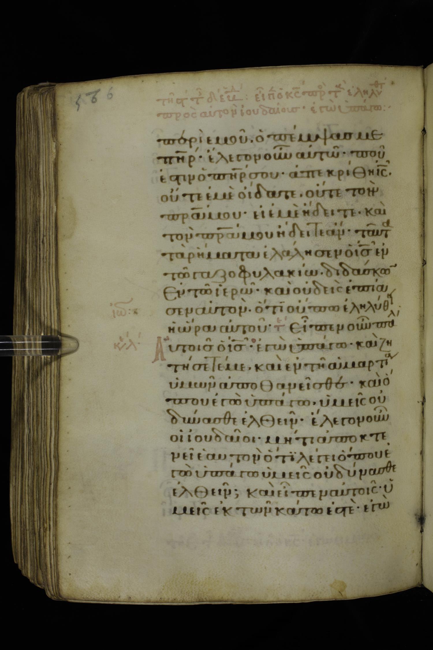 Fourteenth century minuscule of the Gospels on parchment; 332 leaves, 1 column, 21 lines per column. Images were taken at the National Library of Greece in Athens.