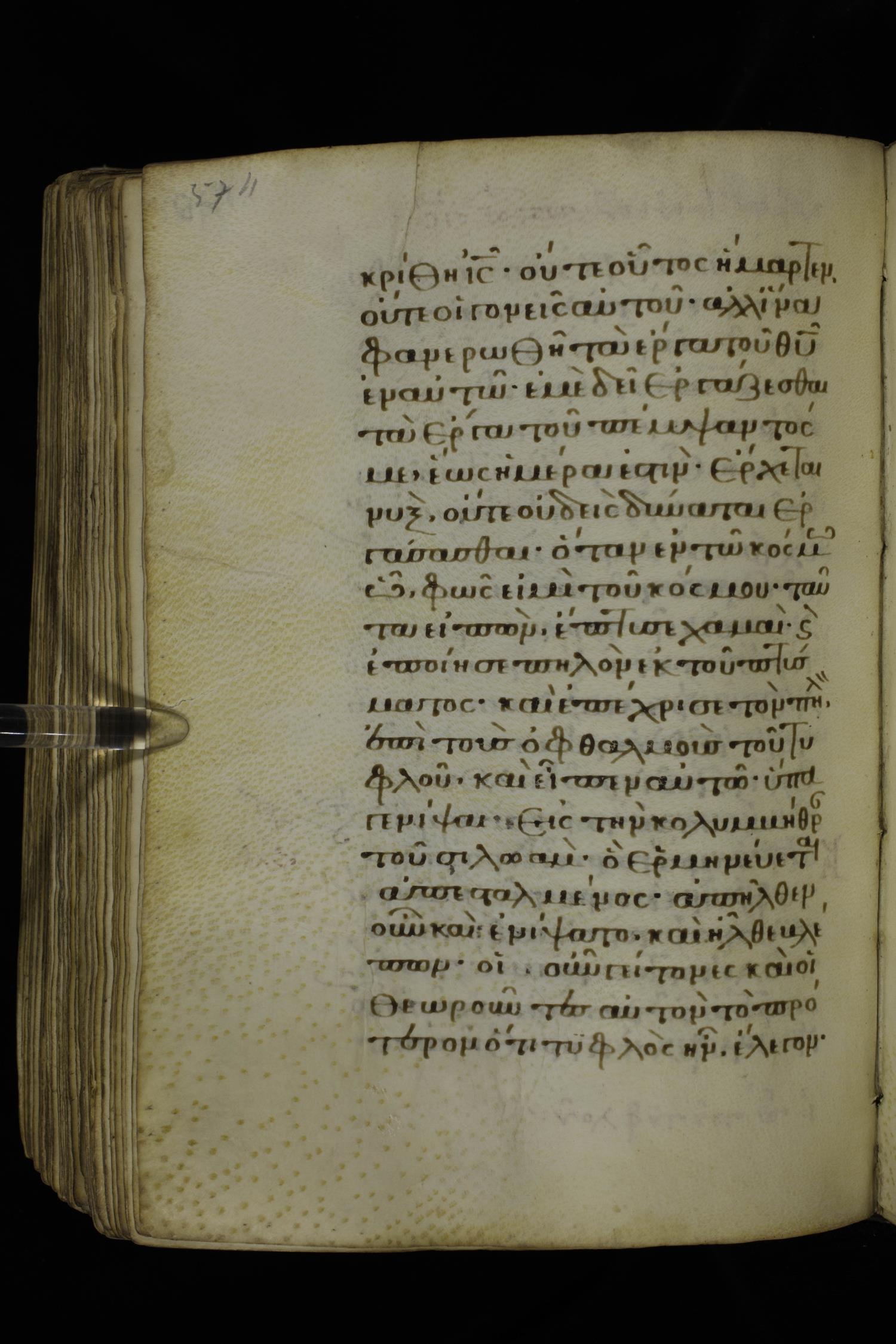 Fourteenth century minuscule of the Gospels on parchment; 332 leaves, 1 column, 21 lines per column. Images were taken at the National Library of Greece in Athens.