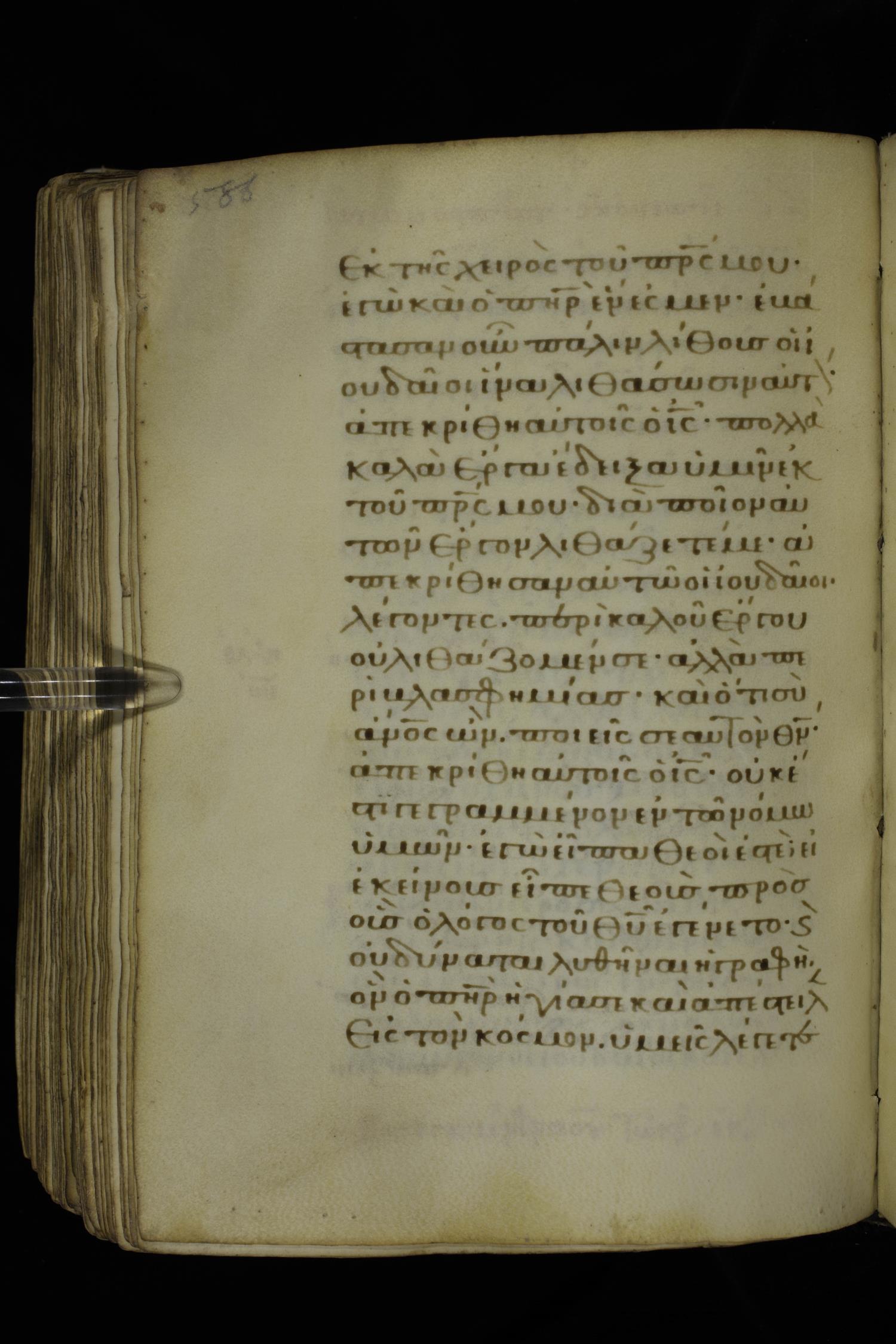Fourteenth century minuscule of the Gospels on parchment; 332 leaves, 1 column, 21 lines per column. Images were taken at the National Library of Greece in Athens.