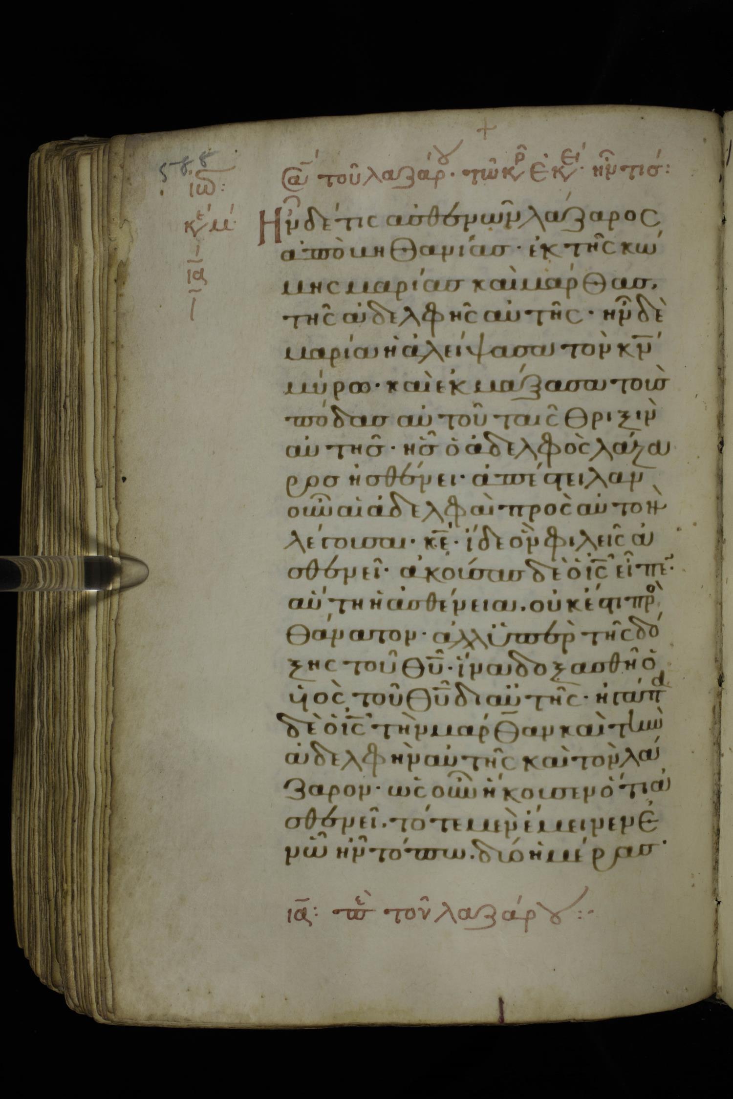 Ἦν δέ τις ἀσθενῶν, Λάζαρος ἀπὸ Βηθανίας ἐκ τῆς κώμης Μαρίας καὶ Μάρθας τῆς ἀδελφῆς αὐτῆς.