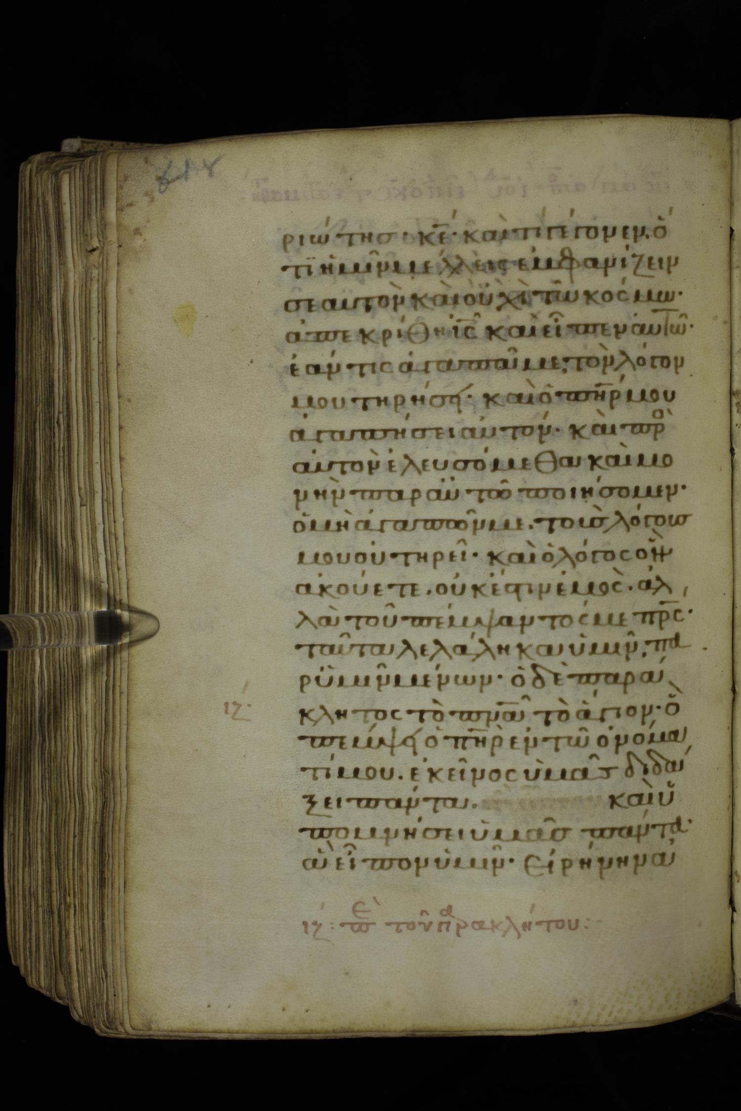 Fourteenth century minuscule of the Gospels on parchment; 332 leaves, 1 column, 21 lines per column. Images were taken at the National Library of Greece in Athens.