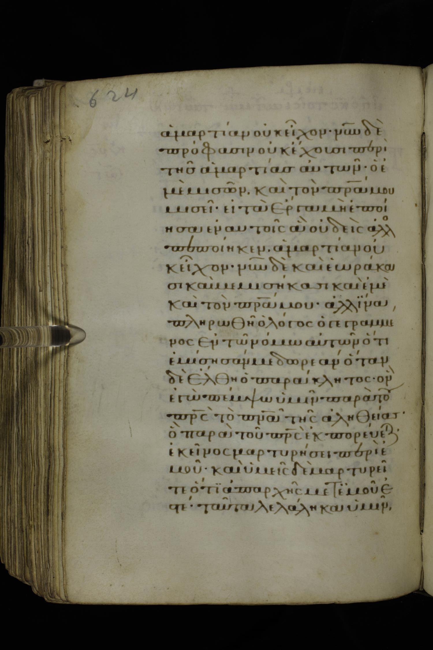 Fourteenth century minuscule of the Gospels on parchment; 332 leaves, 1 column, 21 lines per column. Images were taken at the National Library of Greece in Athens.