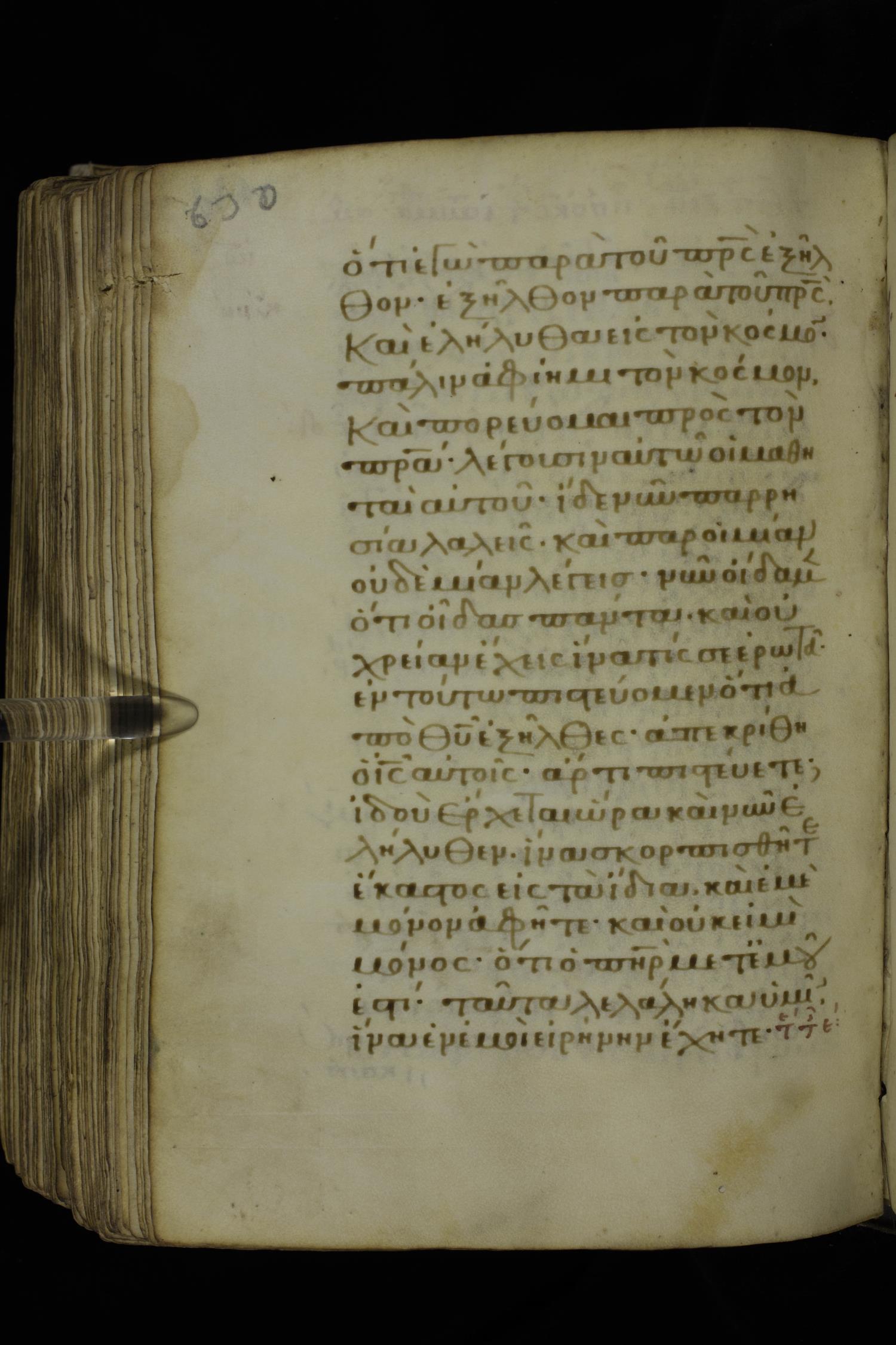 Fourteenth century minuscule of the Gospels on parchment; 332 leaves, 1 column, 21 lines per column. Images were taken at the National Library of Greece in Athens.