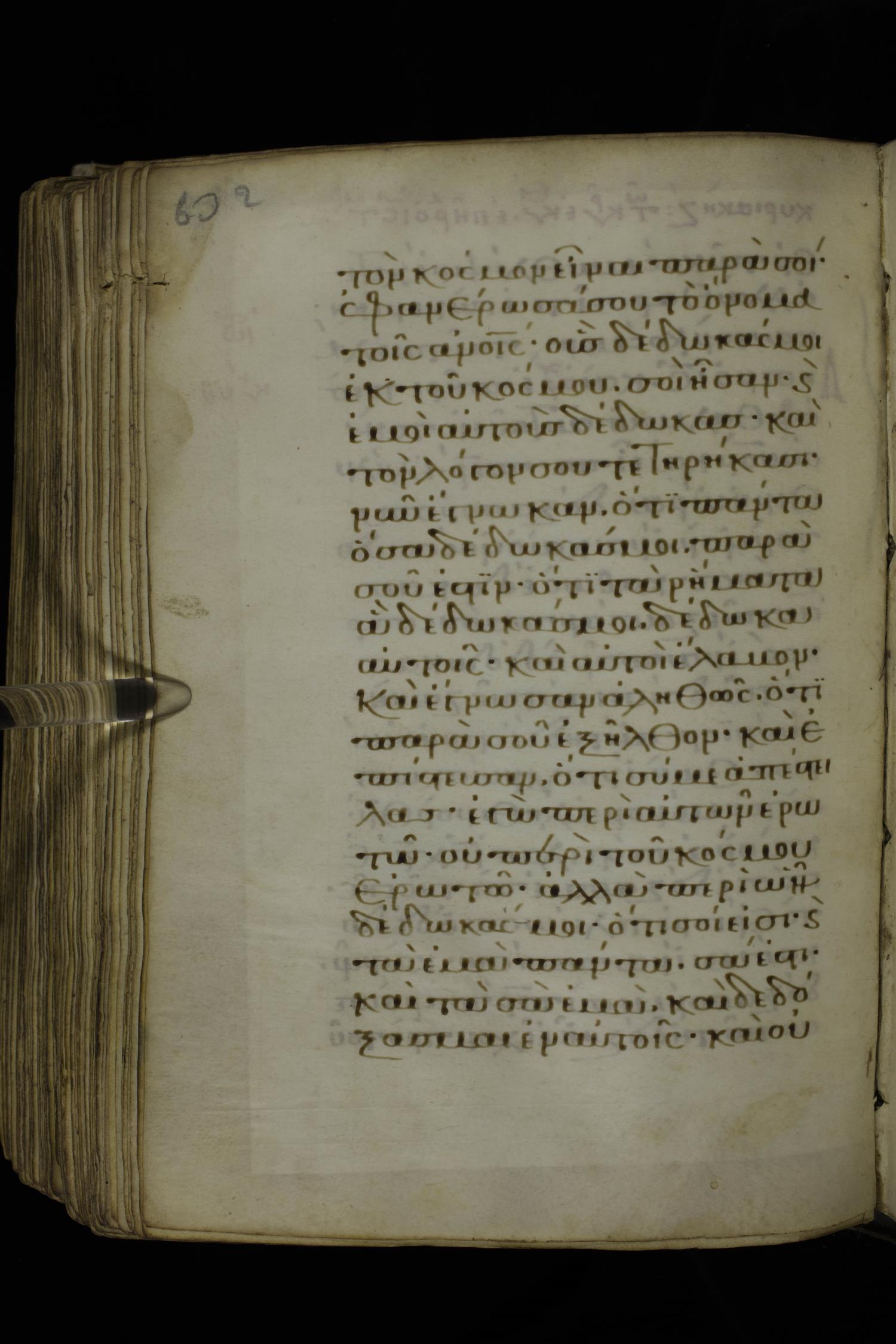 Fourteenth century minuscule of the Gospels on parchment; 332 leaves, 1 column, 21 lines per column. Images were taken at the National Library of Greece in Athens.