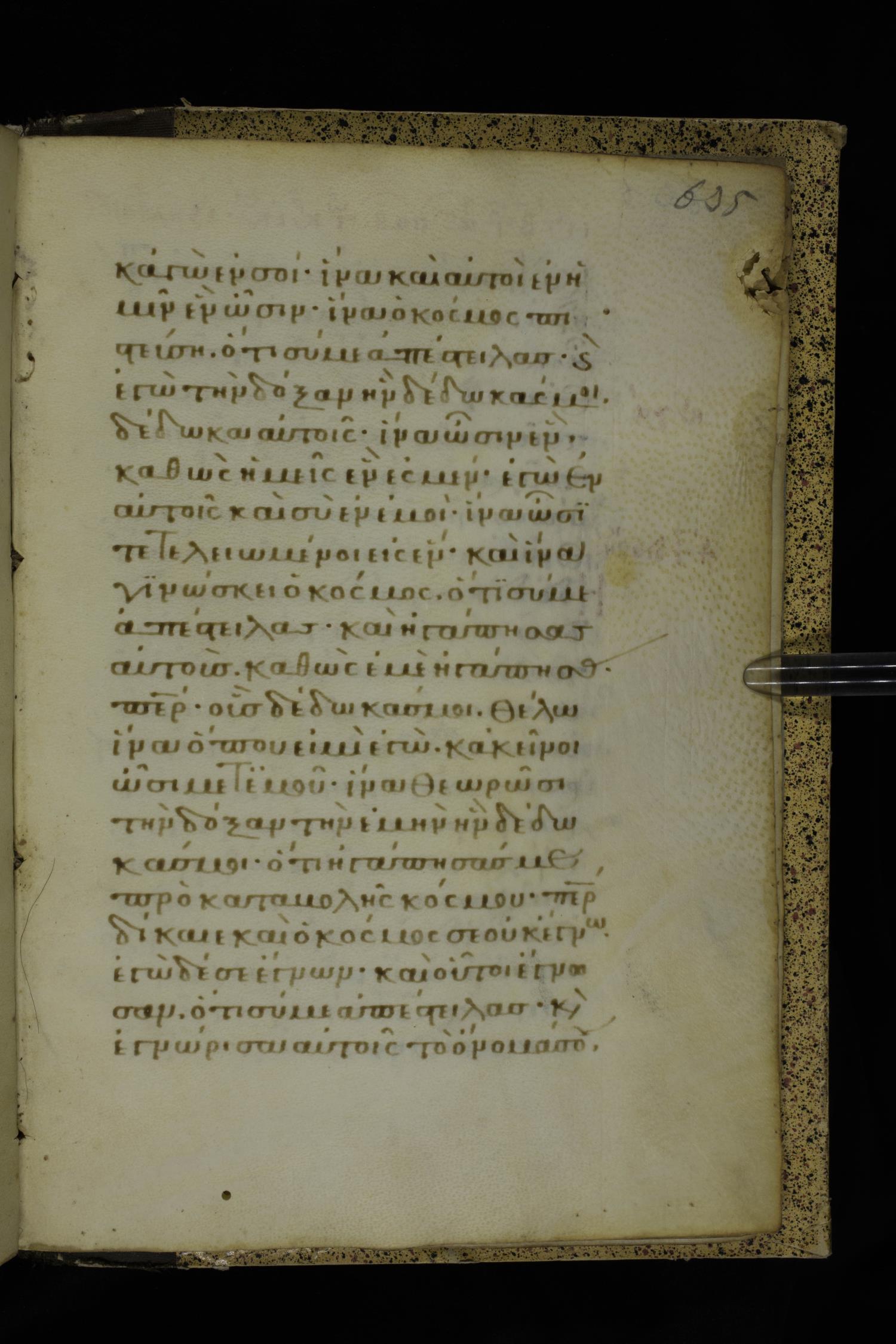 Fourteenth century minuscule of the Gospels on parchment; 332 leaves, 1 column, 21 lines per column. Images were taken at the National Library of Greece in Athens.