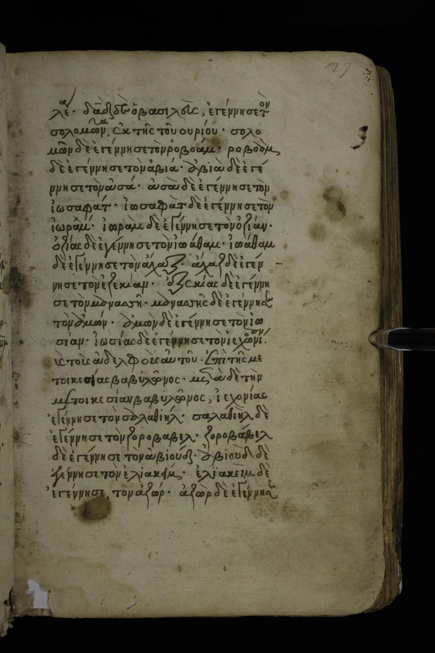 Ὀζείας / Ὀζίας δὲ ἐγέννησεν τὸν Ἰωαθάμ, Ἰωαθὰμ δὲ ἐγέννησεν τὸν Ἄχας / Ἀχάζ, Ἄχας / Ἀχὰζ δὲ ἐγέννησεν τὸν Ἑζεκίαν,