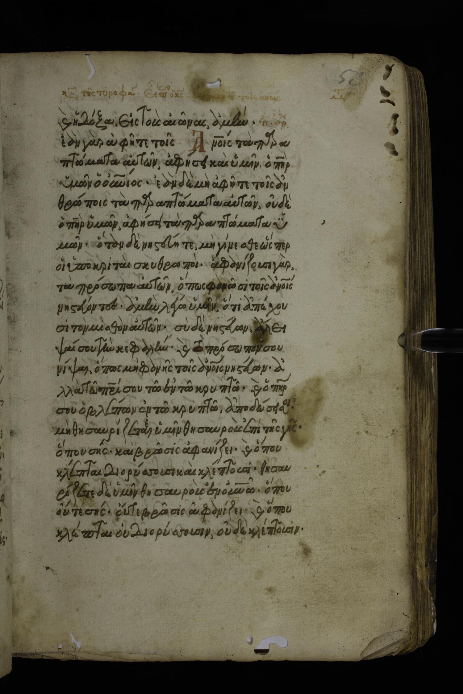 Fourteenth century minuscule of the Gospels on parchment; 324 leaves, 1 column, 21 lines per column. Images were taken at the National Library of Greece in Athens.