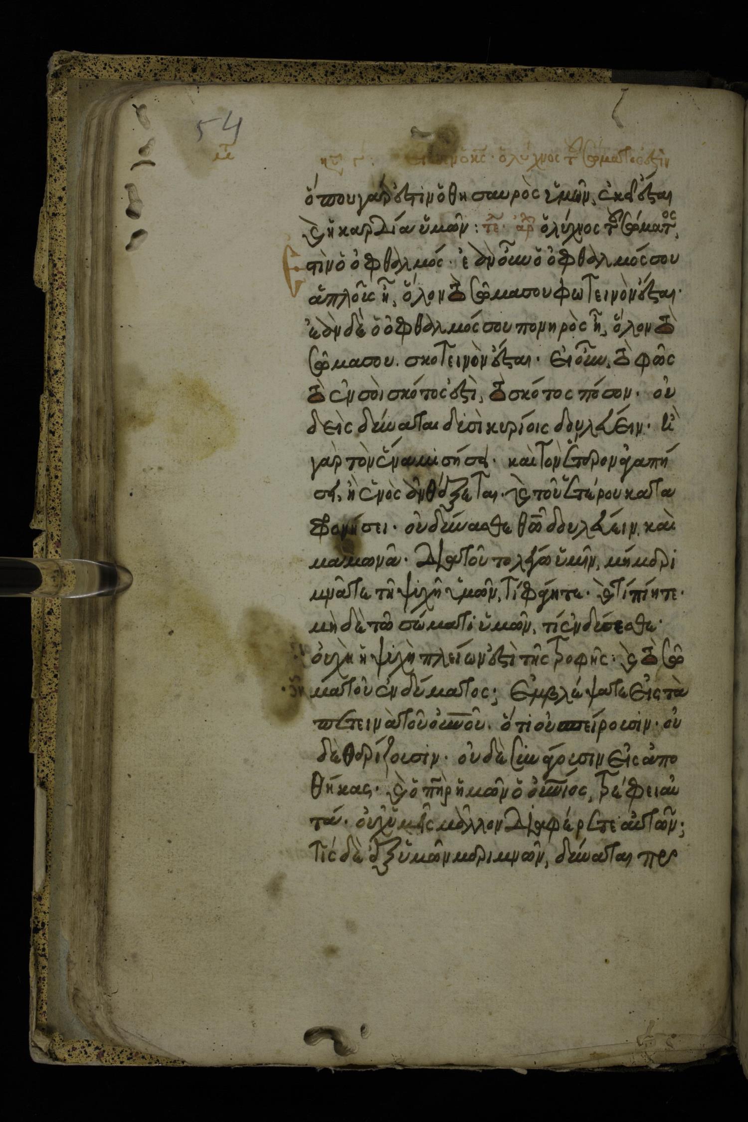 Fourteenth century minuscule of the Gospels on parchment; 324 leaves, 1 column, 21 lines per column. Images were taken at the National Library of Greece in Athens.