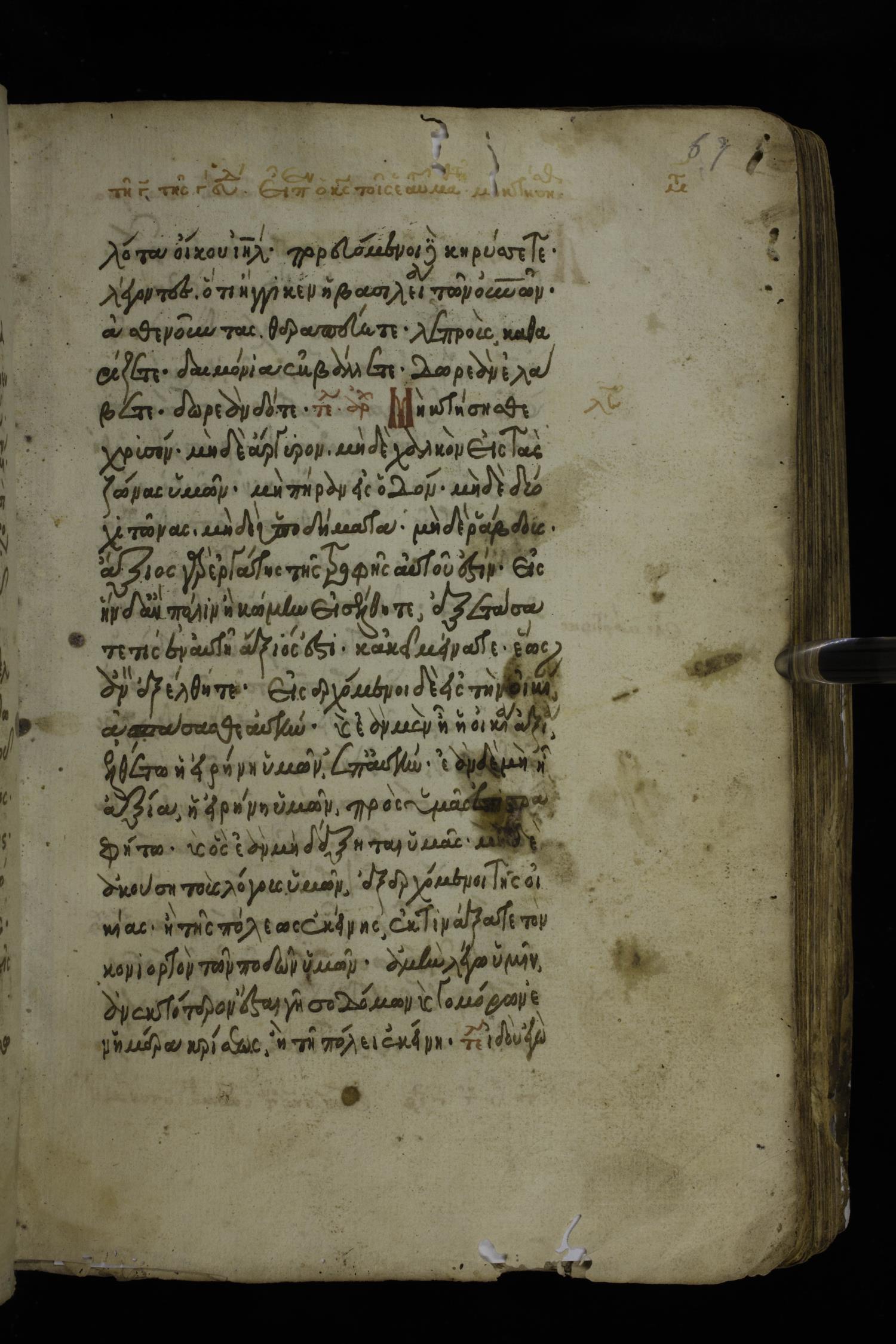 Fourteenth century minuscule of the Gospels on parchment; 324 leaves, 1 column, 21 lines per column. Images were taken at the National Library of Greece in Athens.