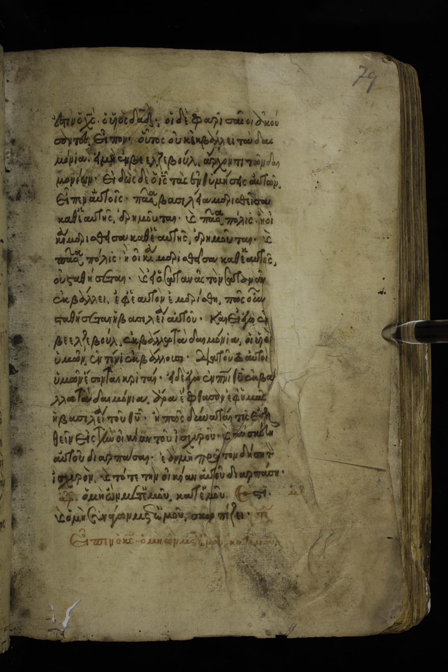 Fourteenth century minuscule of the Gospels on parchment; 324 leaves, 1 column, 21 lines per column. Images were taken at the National Library of Greece in Athens.