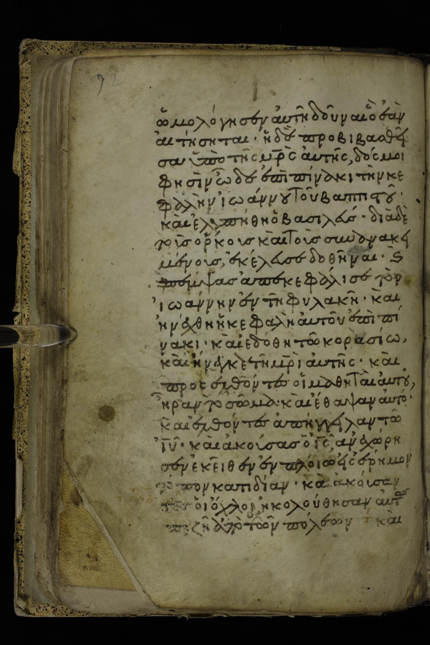 Fourteenth century minuscule of the Gospels on parchment; 324 leaves, 1 column, 21 lines per column. Images were taken at the National Library of Greece in Athens.