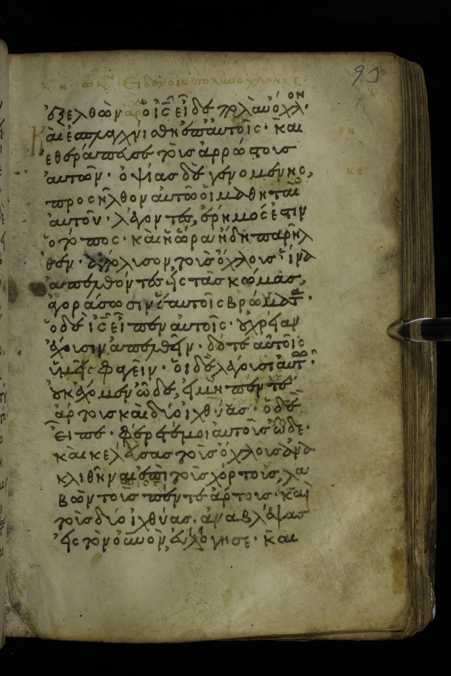Fourteenth century minuscule of the Gospels on parchment; 324 leaves, 1 column, 21 lines per column. Images were taken at the National Library of Greece in Athens.
