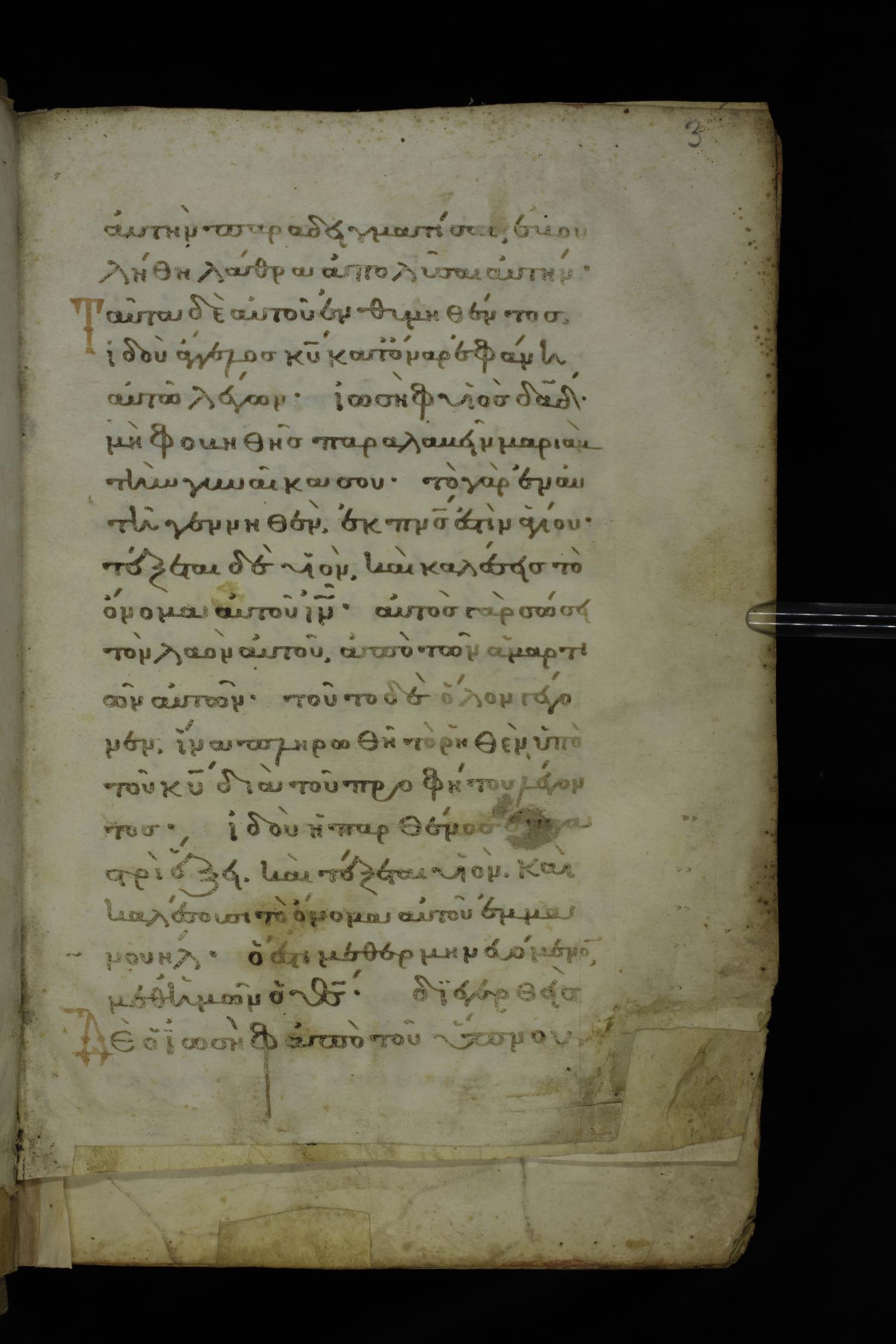 Fourteenth century minuscule of the Gospels on parchment; 332 leaves, 1 column, 20-22 lines per column. Images were taken at the National Library of Greece in Athens.