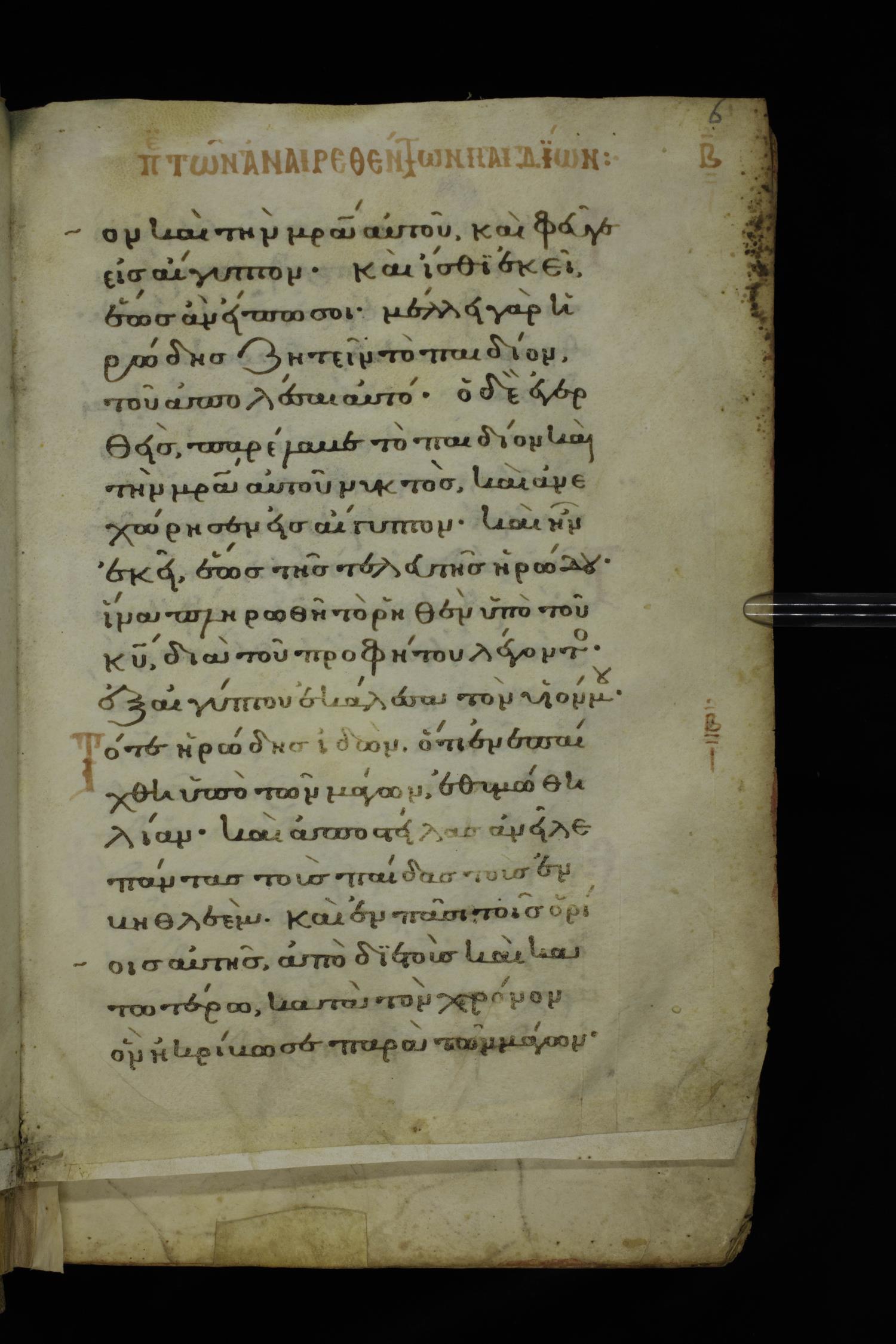 Fourteenth century minuscule of the Gospels on parchment; 332 leaves, 1 column, 20-22 lines per column. Images were taken at the National Library of Greece in Athens.