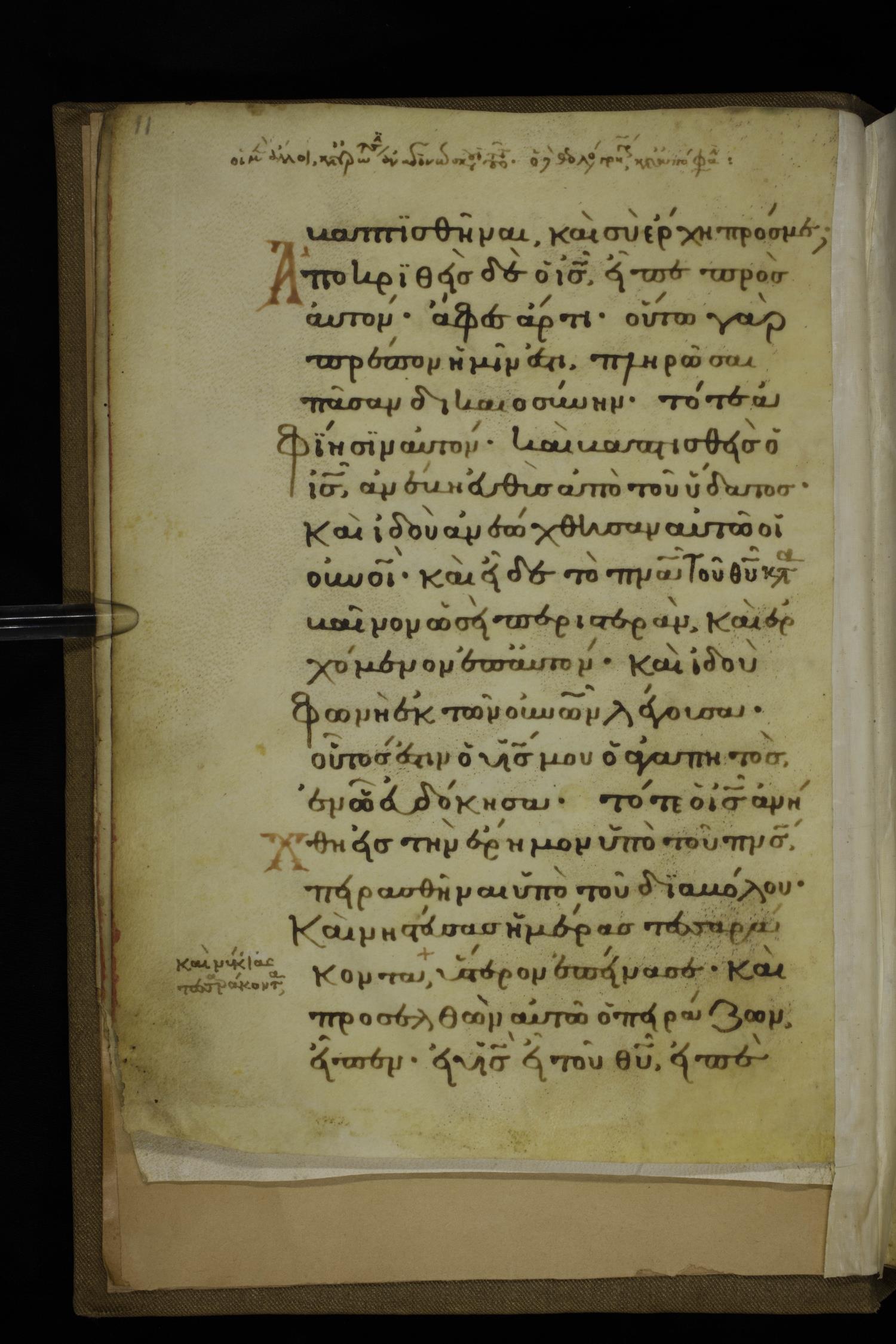 Fourteenth century minuscule of the Gospels on parchment; 332 leaves, 1 column, 20-22 lines per column. Images were taken at the National Library of Greece in Athens.