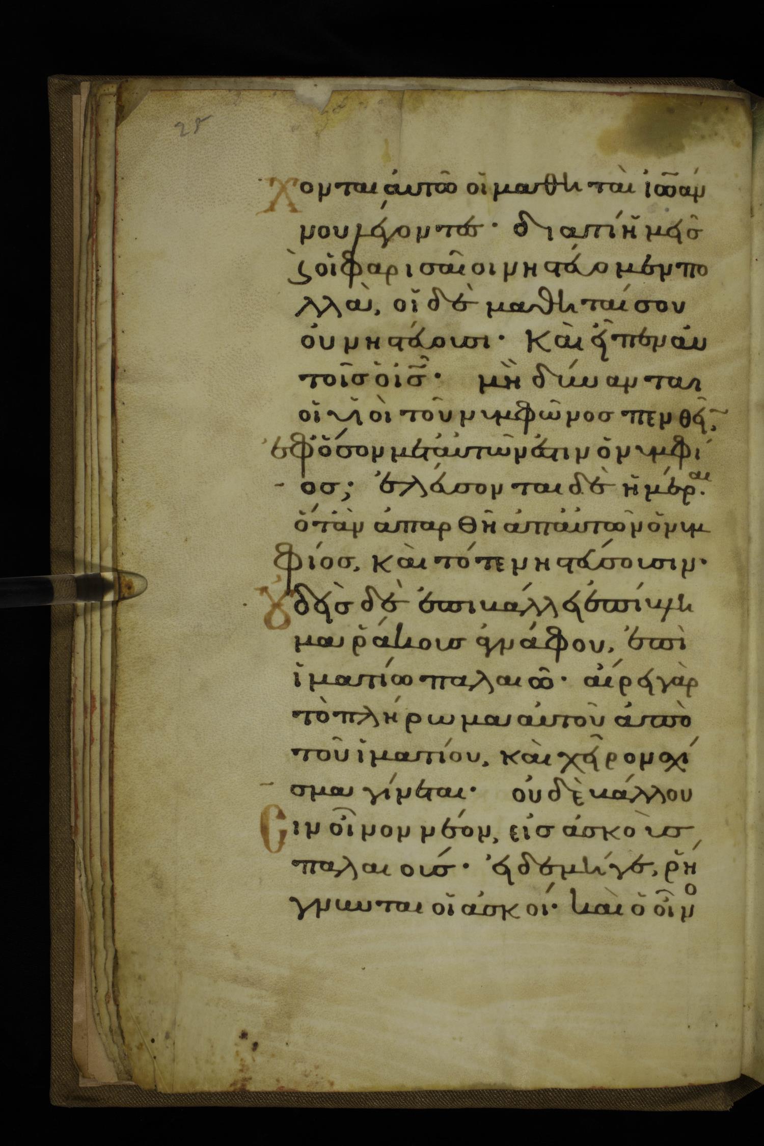 Fourteenth century minuscule of the Gospels on parchment; 332 leaves, 1 column, 20-22 lines per column. Images were taken at the National Library of Greece in Athens.