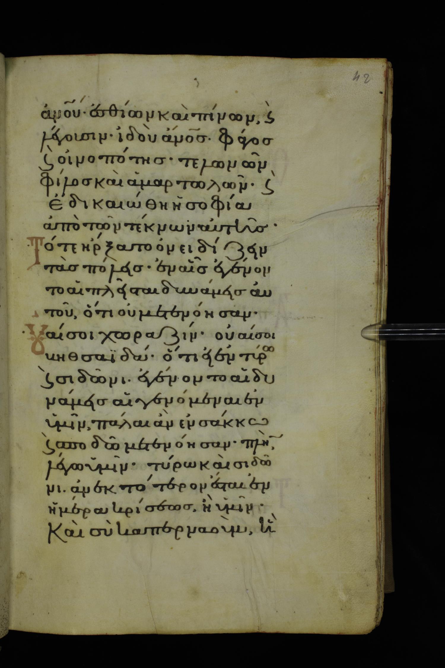Fourteenth century minuscule of the Gospels on parchment; 332 leaves, 1 column, 20-22 lines per column. Images were taken at the National Library of Greece in Athens.