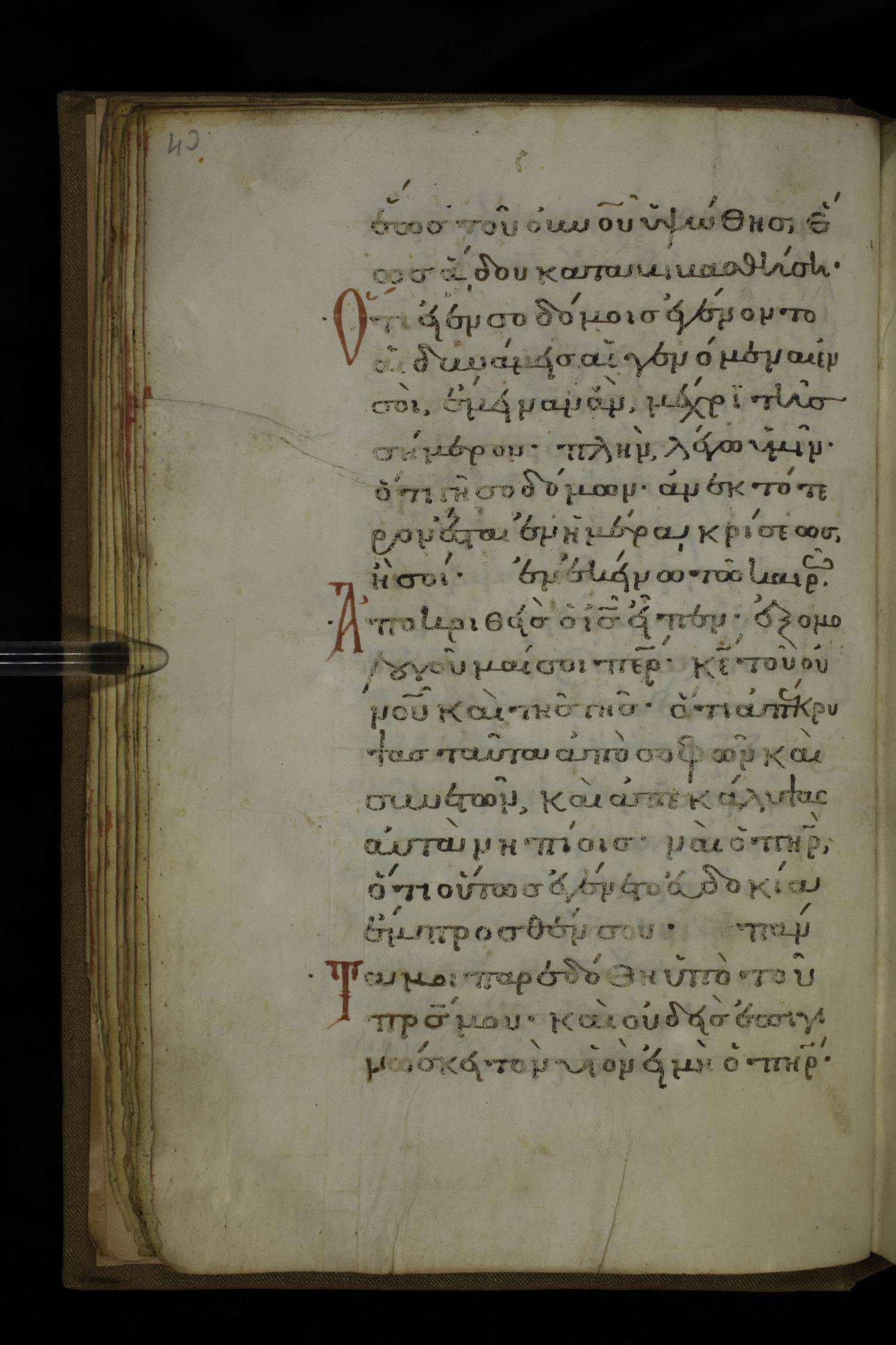 Fourteenth century minuscule of the Gospels on parchment; 332 leaves, 1 column, 20-22 lines per column. Images were taken at the National Library of Greece in Athens.