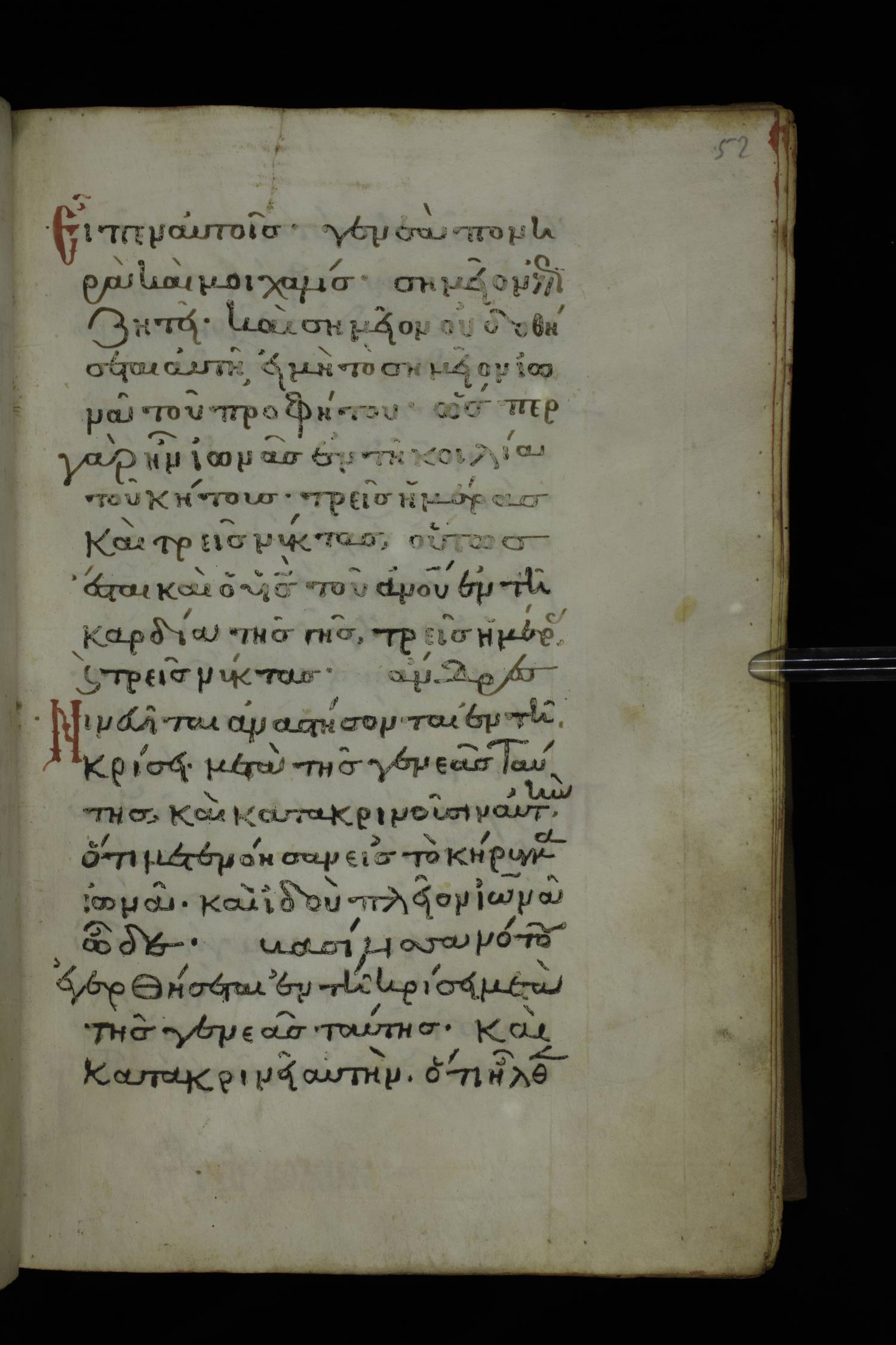 Fourteenth century minuscule of the Gospels on parchment; 332 leaves, 1 column, 20-22 lines per column. Images were taken at the National Library of Greece in Athens.
