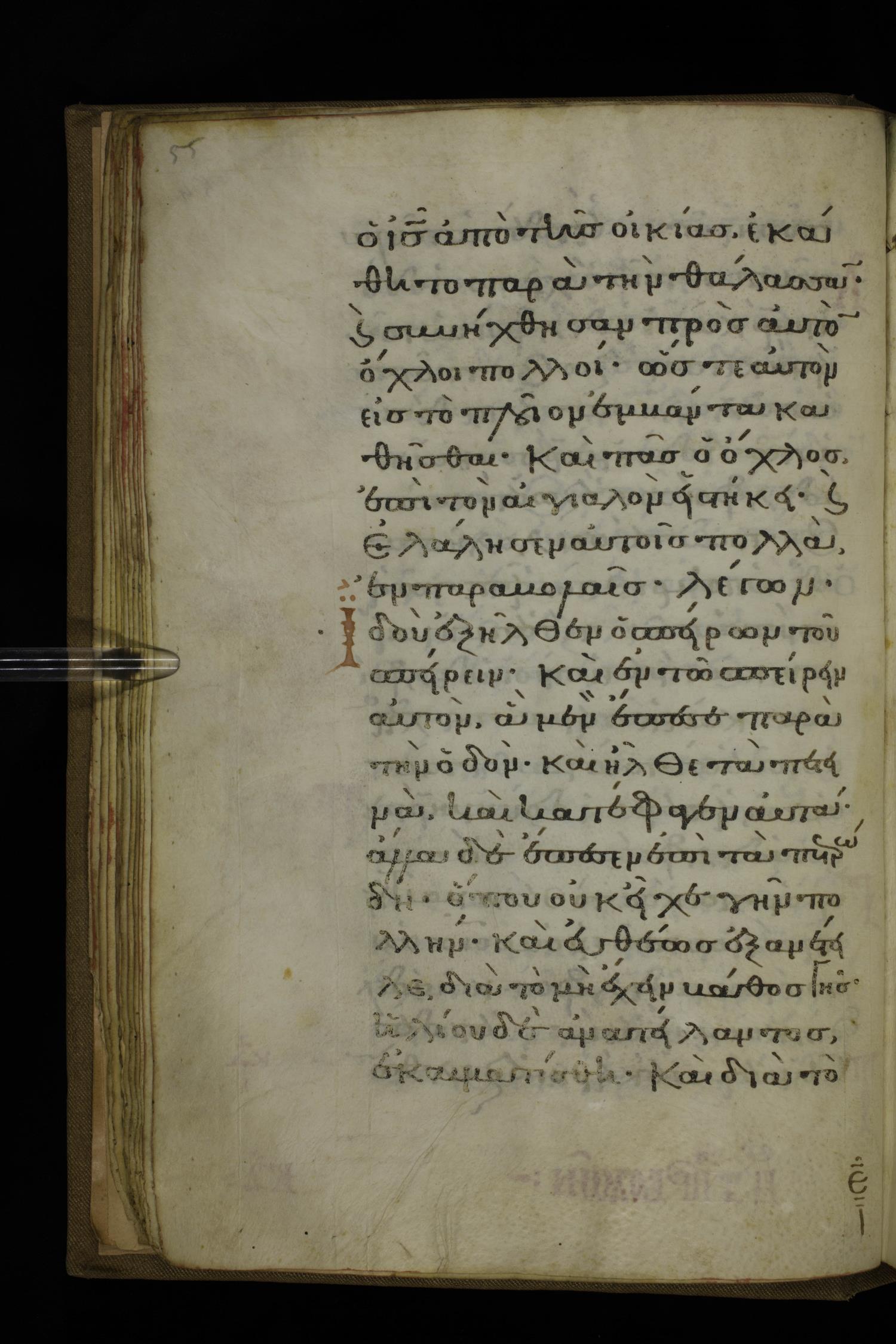 Fourteenth century minuscule of the Gospels on parchment; 332 leaves, 1 column, 20-22 lines per column. Images were taken at the National Library of Greece in Athens.