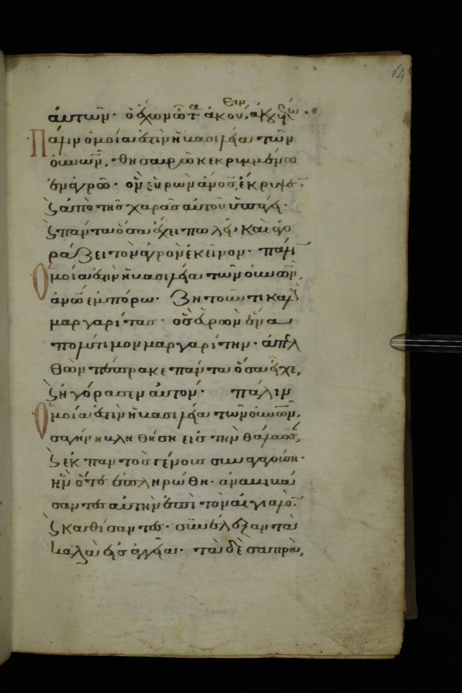 Fourteenth century minuscule of the Gospels on parchment; 332 leaves, 1 column, 20-22 lines per column. Images were taken at the National Library of Greece in Athens.