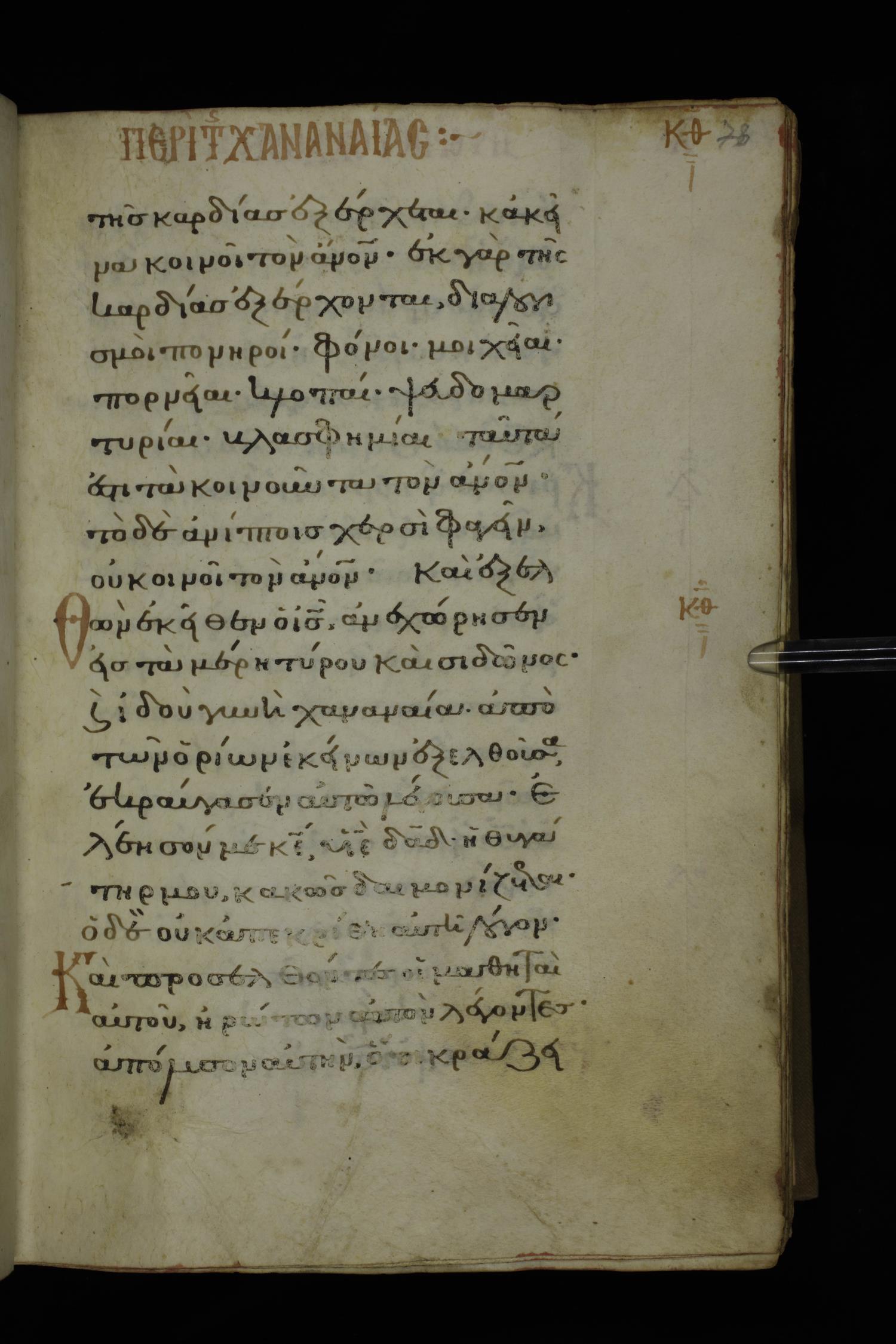 Fourteenth century minuscule of the Gospels on parchment; 332 leaves, 1 column, 20-22 lines per column. Images were taken at the National Library of Greece in Athens.