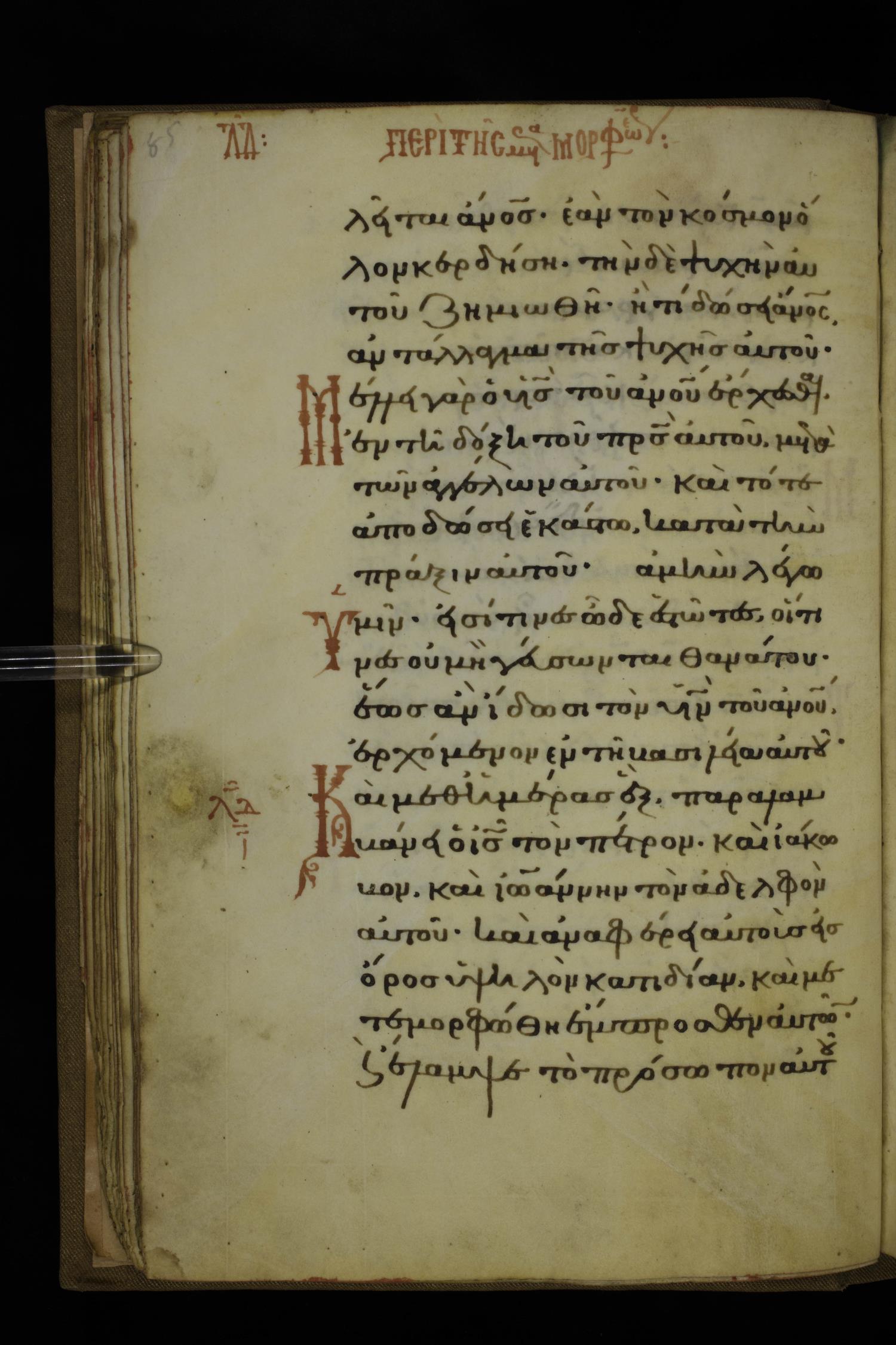 Fourteenth century minuscule of the Gospels on parchment; 332 leaves, 1 column, 20-22 lines per column. Images were taken at the National Library of Greece in Athens.