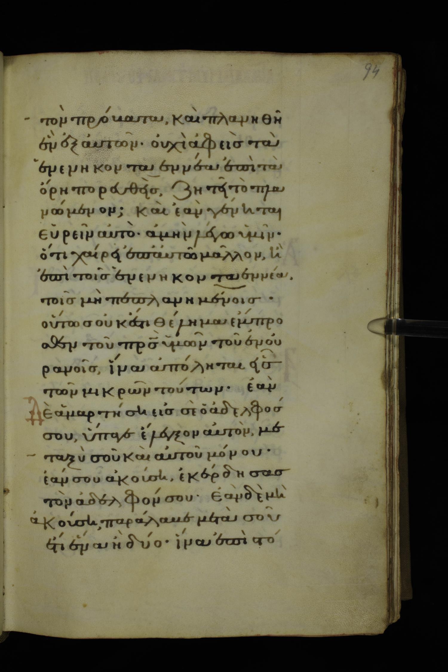 Fourteenth century minuscule of the Gospels on parchment; 332 leaves, 1 column, 20-22 lines per column. Images were taken at the National Library of Greece in Athens.