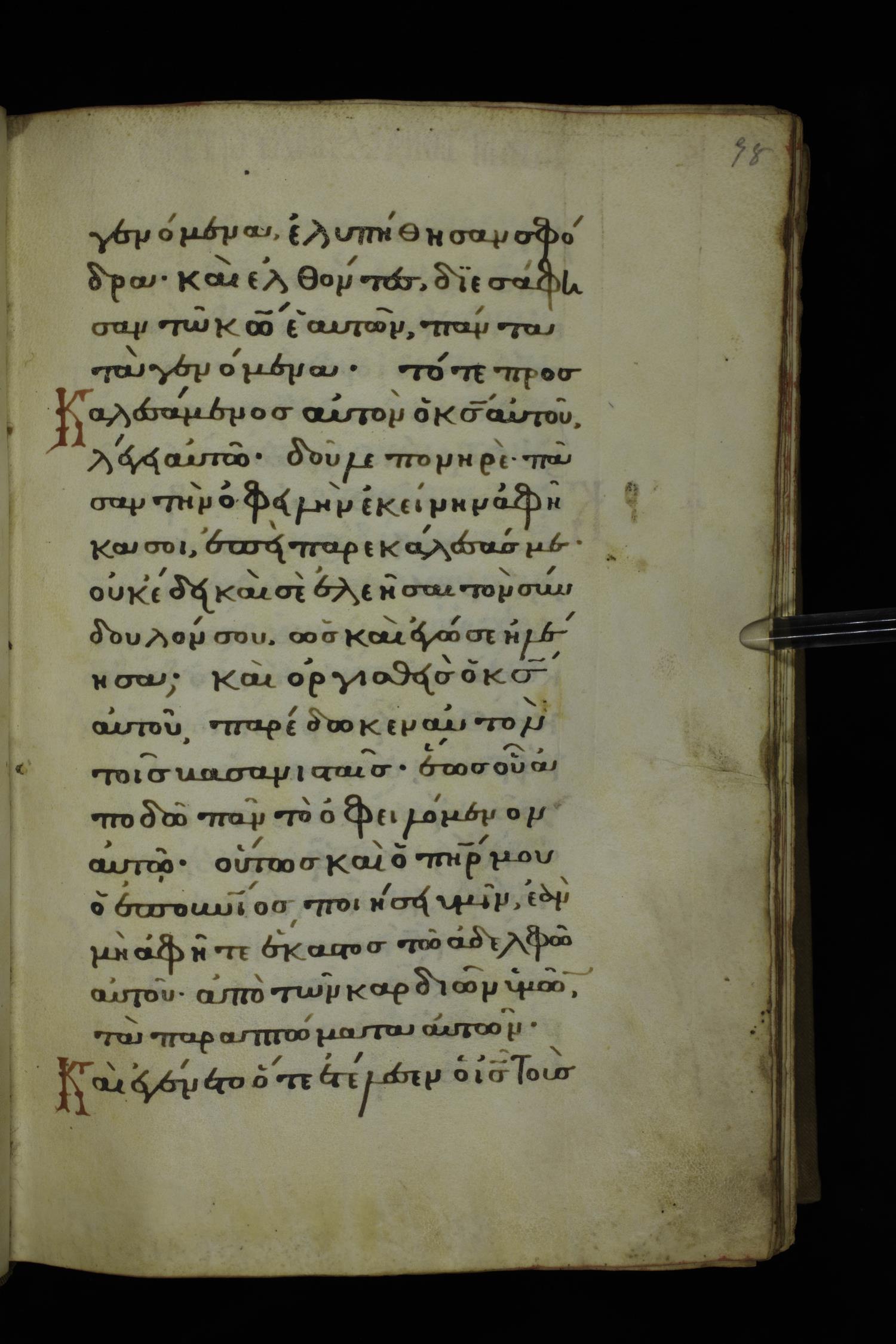 Fourteenth century minuscule of the Gospels on parchment; 332 leaves, 1 column, 20-22 lines per column. Images were taken at the National Library of Greece in Athens.