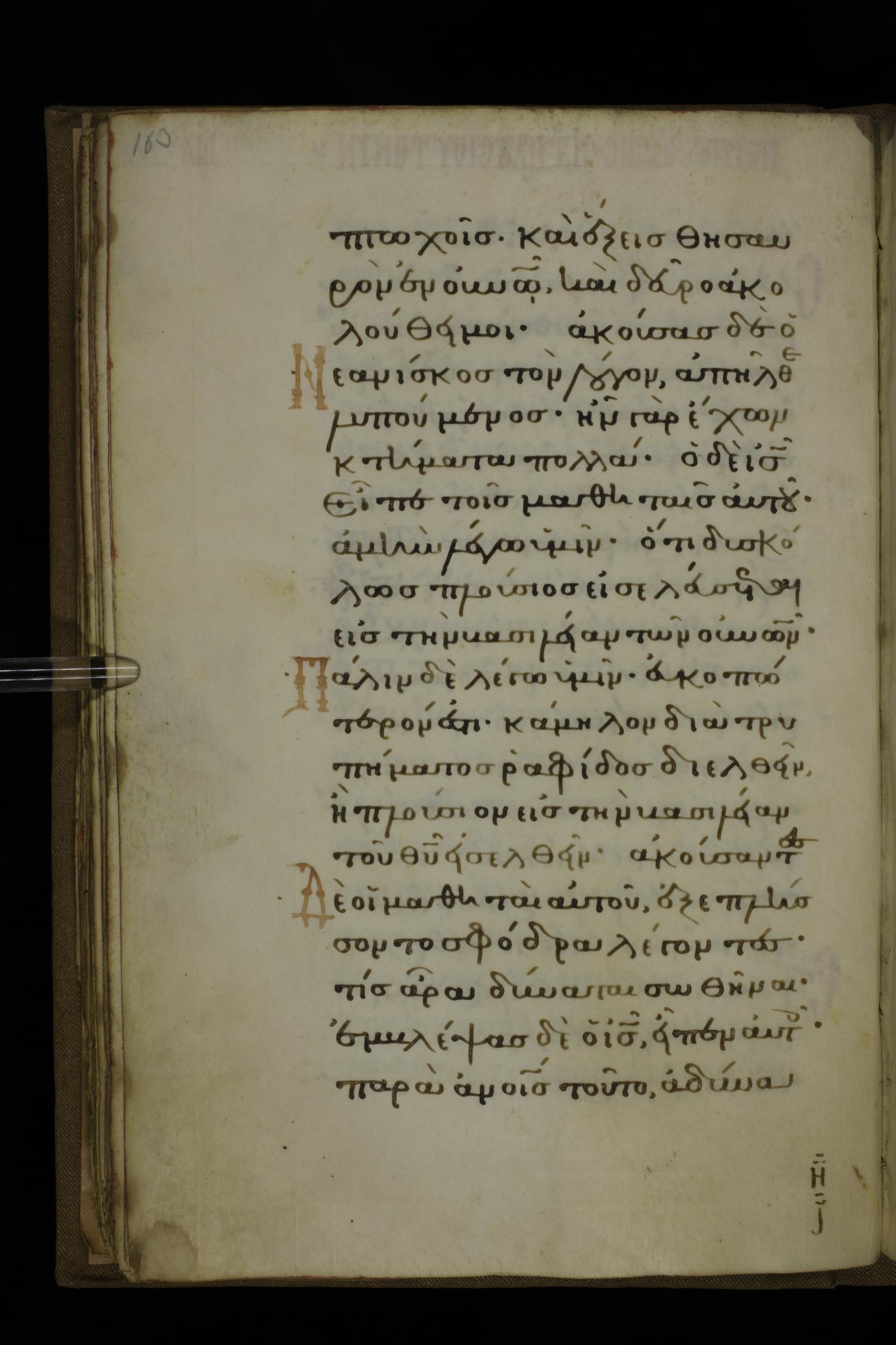 Fourteenth century minuscule of the Gospels on parchment; 332 leaves, 1 column, 20-22 lines per column. Images were taken at the National Library of Greece in Athens.