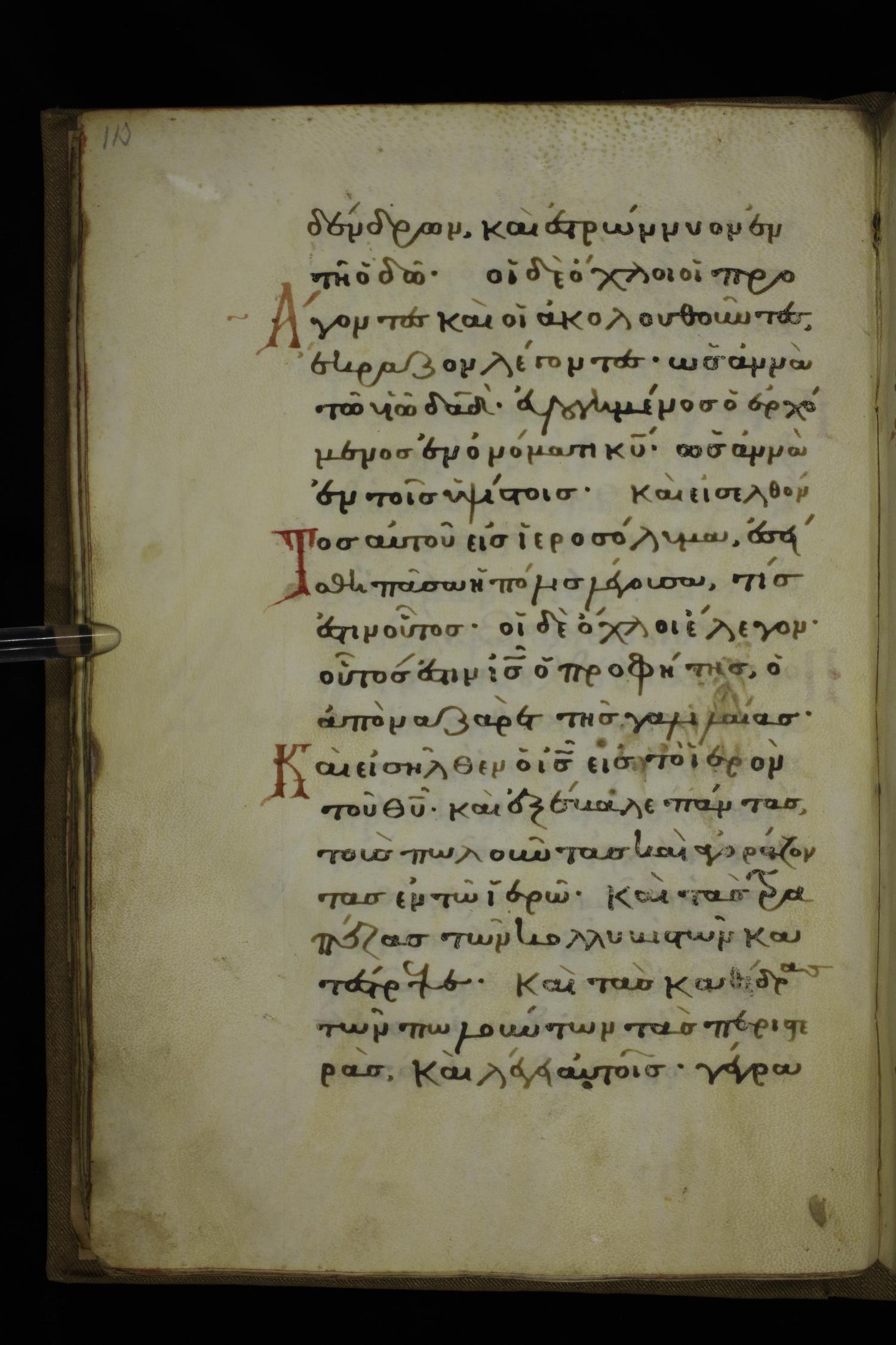 Fourteenth century minuscule of the Gospels on parchment; 332 leaves, 1 column, 20-22 lines per column. Images were taken at the National Library of Greece in Athens.