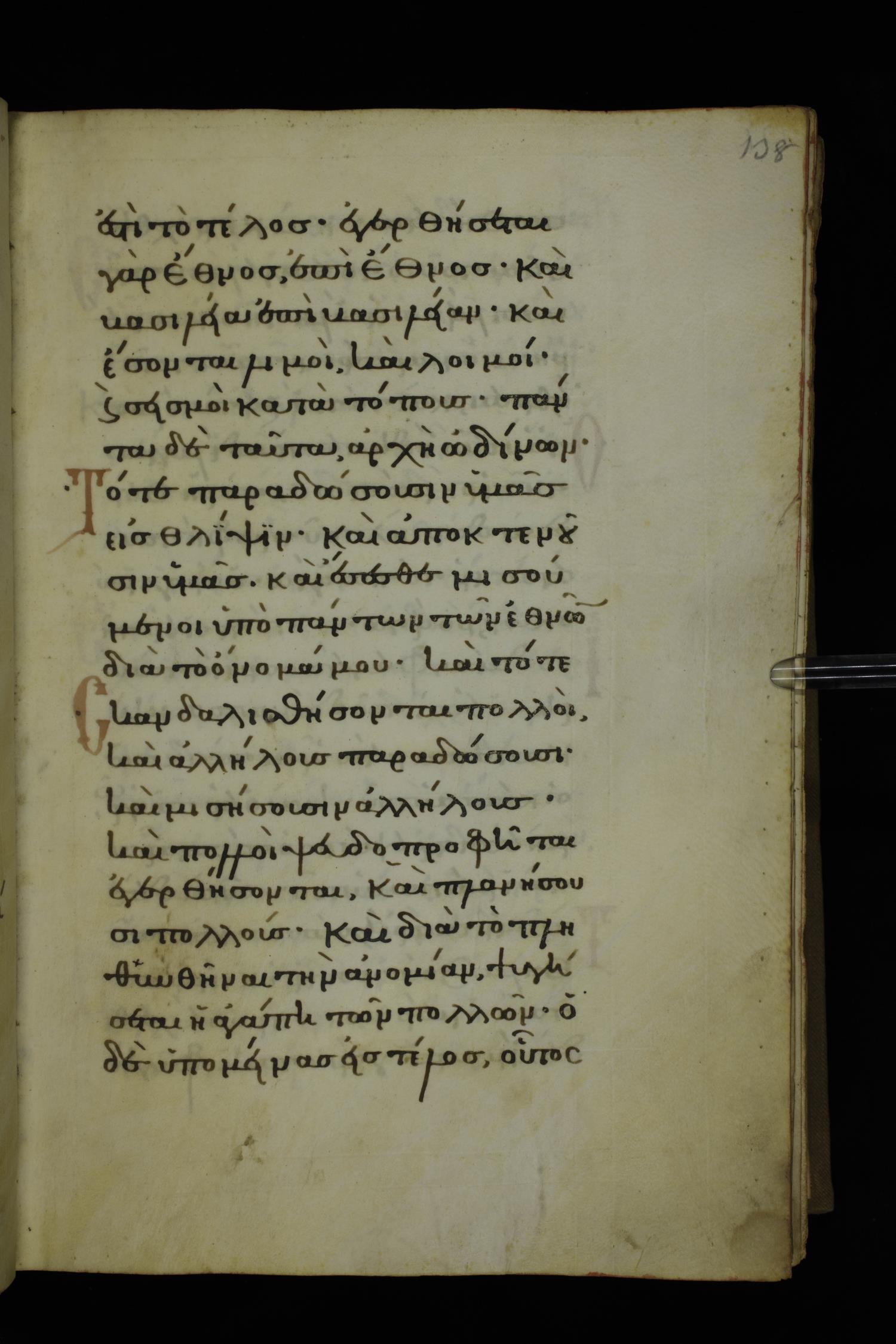 Fourteenth century minuscule of the Gospels on parchment; 332 leaves, 1 column, 20-22 lines per column. Images were taken at the National Library of Greece in Athens.