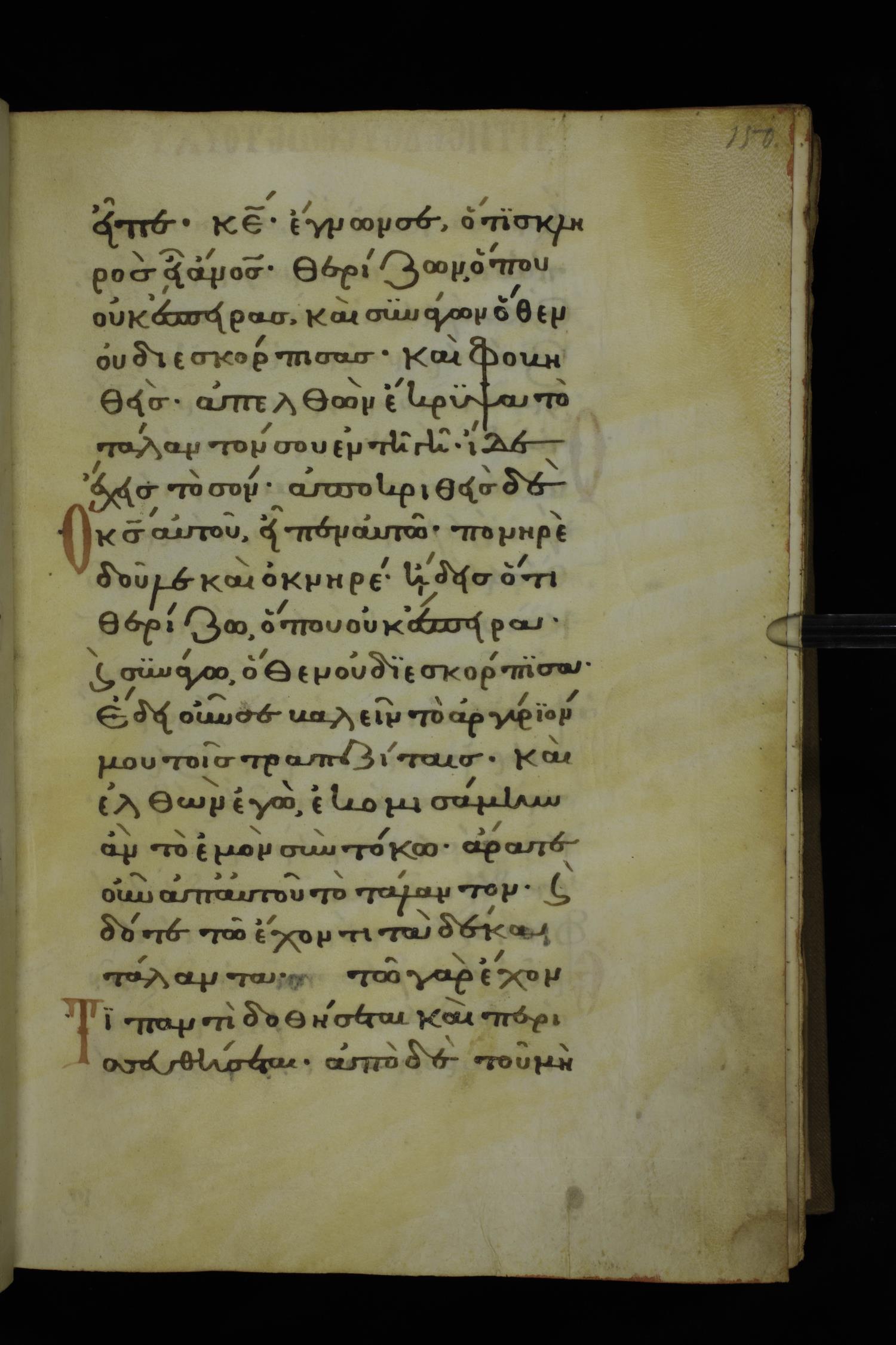 Fourteenth century minuscule of the Gospels on parchment; 332 leaves, 1 column, 20-22 lines per column. Images were taken at the National Library of Greece in Athens.