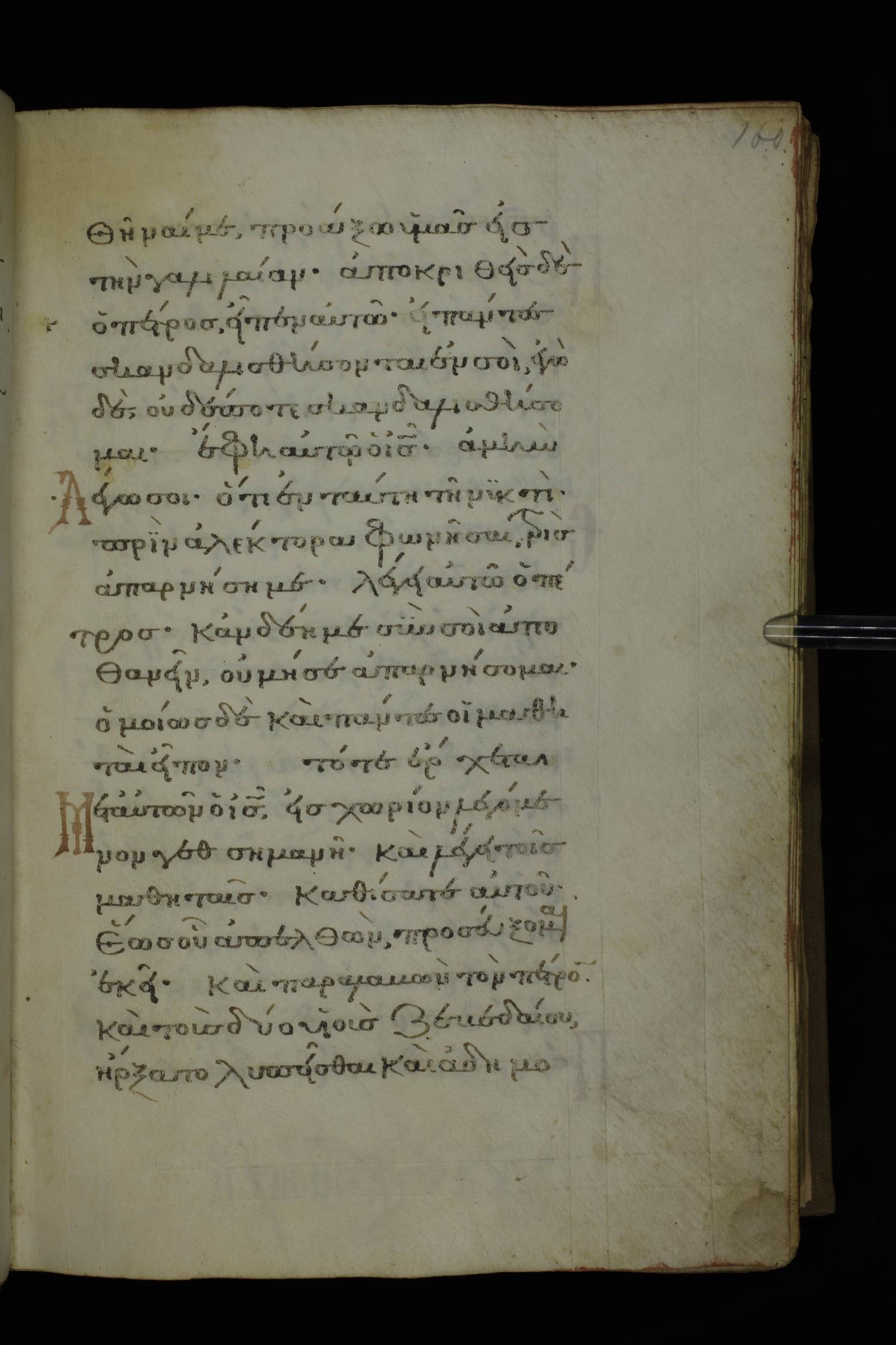 Fourteenth century minuscule of the Gospels on parchment; 332 leaves, 1 column, 20-22 lines per column. Images were taken at the National Library of Greece in Athens.