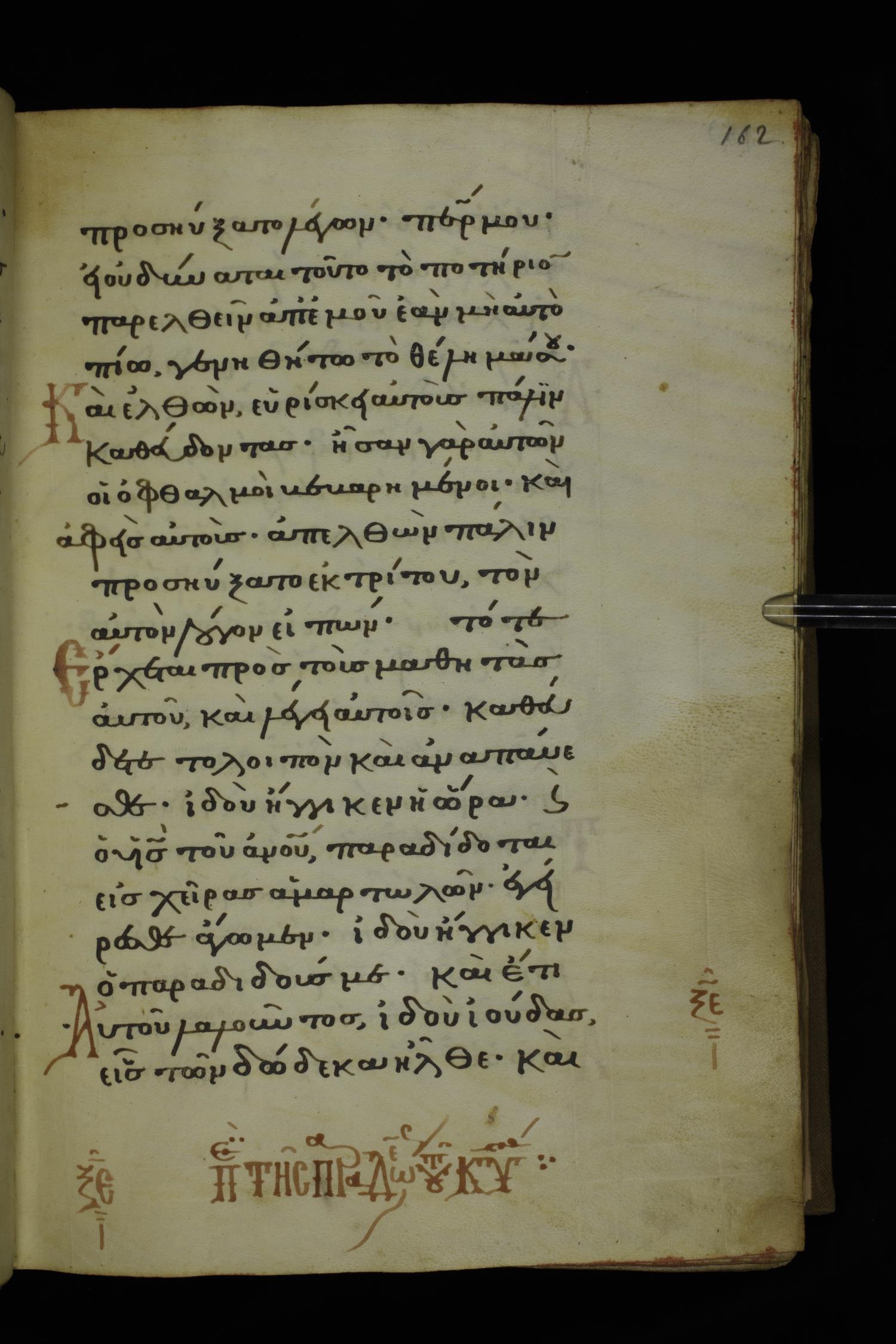 Fourteenth century minuscule of the Gospels on parchment; 332 leaves, 1 column, 20-22 lines per column. Images were taken at the National Library of Greece in Athens.