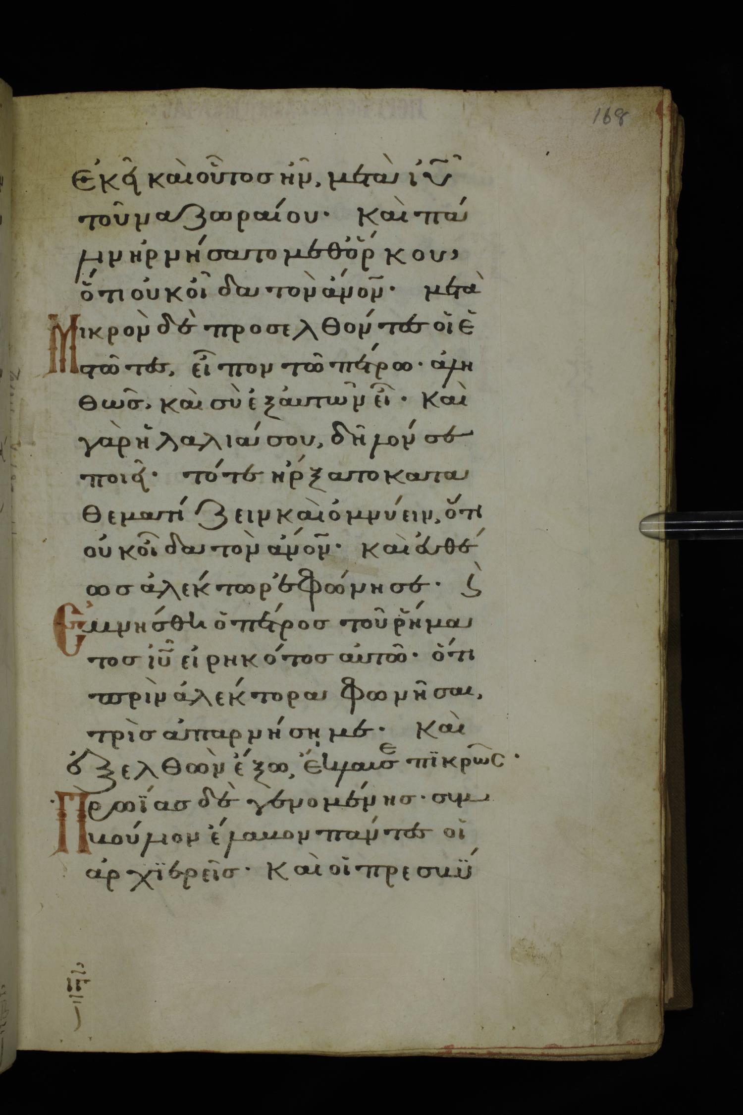Fourteenth century minuscule of the Gospels on parchment; 332 leaves, 1 column, 20-22 lines per column. Images were taken at the National Library of Greece in Athens.